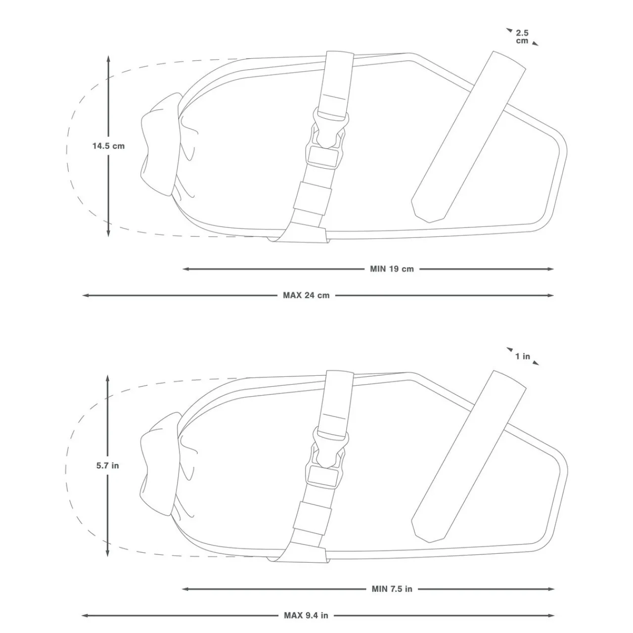 Apidura Racing Saddle Pack 3L is an extremely lightweight and waterproof pack attaches to the saddle rails. It is sturdy when tightened with the Velcro strap and retained in place with the broad strap around the seat tube and does not move around whilst riding, even on uneven surfaces. It is a perfect size for carrying essentials if avoiding wearing a back-pack, or for extra storage capacity for bigger days out. The roll-down closure is quick and easy to use. This is part of the Racing range but is very versatile and not just for ‘racers’!