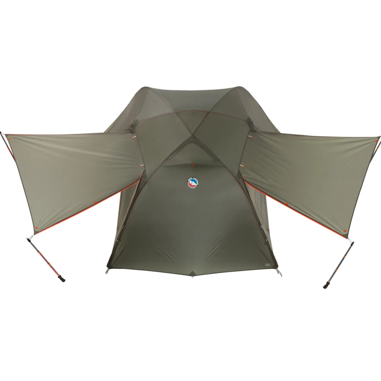 •2 side pockets, 1 3-D bin pocket, 1 oversized ceiling pocket, 4 additional ceiling pockets, 8 x 6” Big Agnes Dirt Dagger™ UL stakes & 4 awning