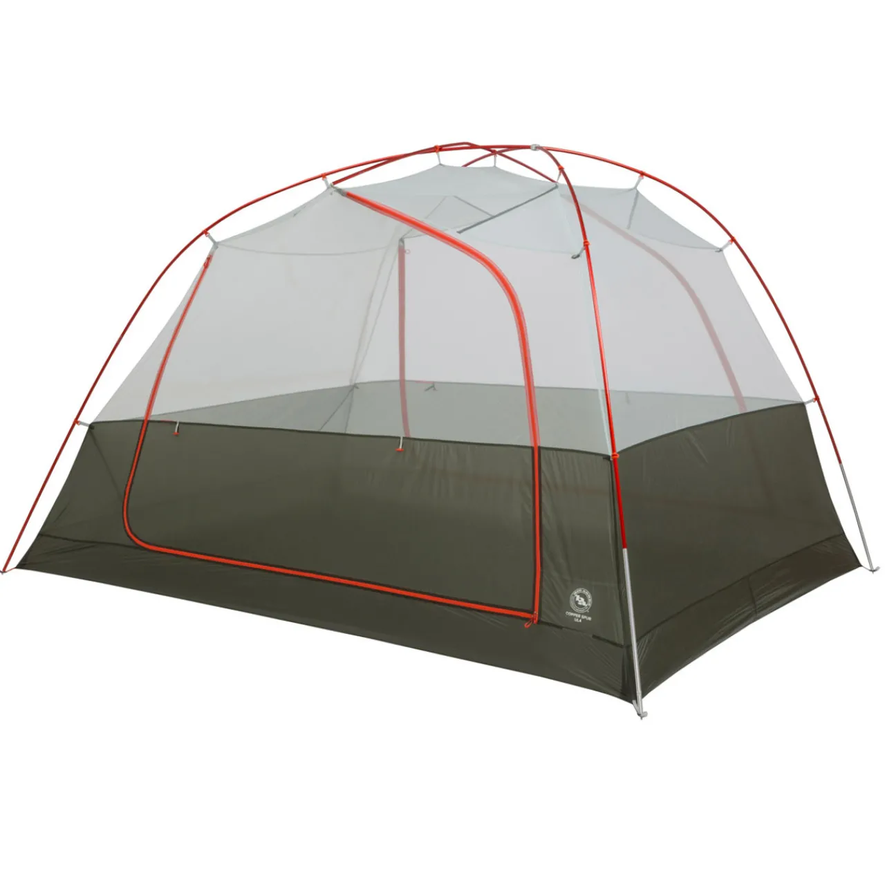 • Rainfly: Proprietary fabric technology; 15D nylon with 20D solution dyed ripstop and a 1500mm (PFAS-free) waterproof silicone and polyurethane coating
