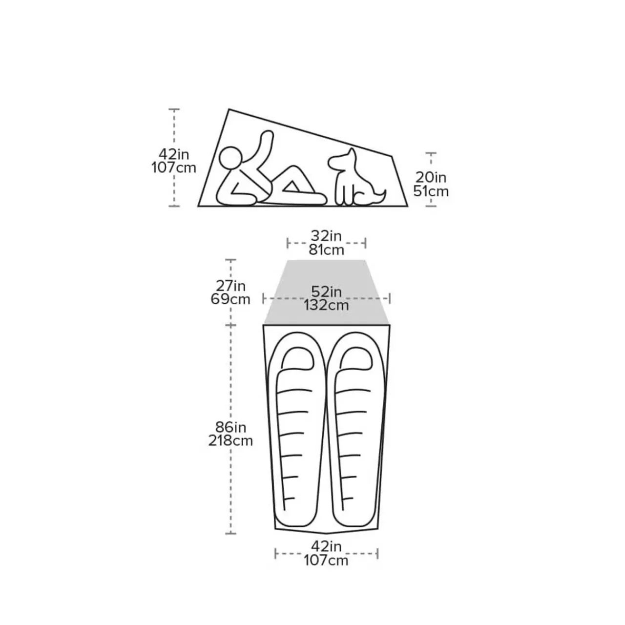 - Dry-entry door design keeps tent interior dry