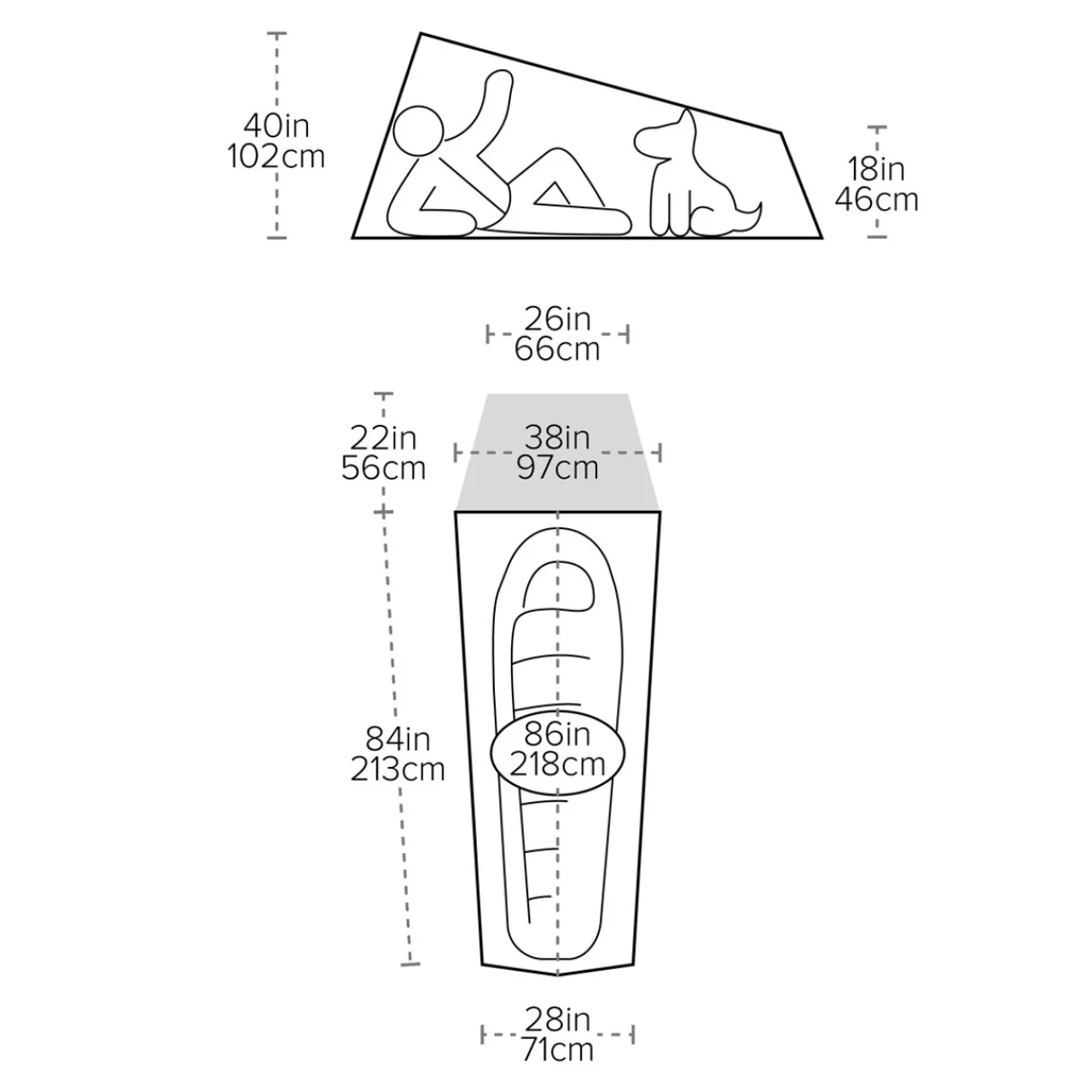 - Structured foot-end corners create more usable space between your feet and tent wall