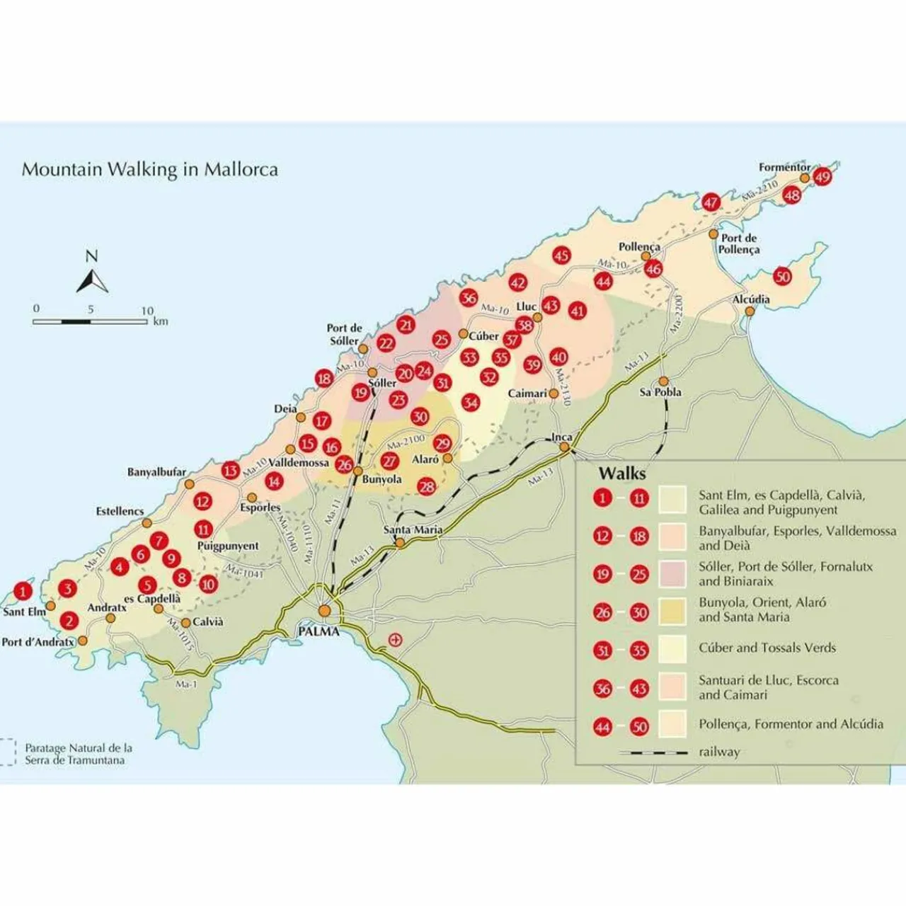 - Centres: Port d’Andratx, Sant Elm, es Capdellà , Calvià , Puigpunyent, Estellencs, Banyalbufar, Esporles, Valldemossa, Deià , Sóller, Bunyola, Alaró, Caimari, Lluc, Pollença, Port de Pollença, Alcúdia