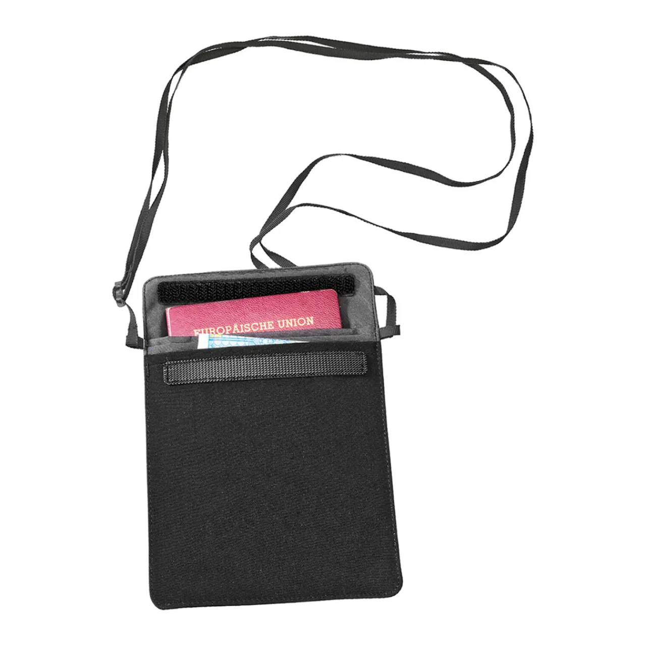 Soft 100% silk Neck Wallet for safe storage of money and travel documents. Inside TPU lamination protects your passport and money from sweat and rain.