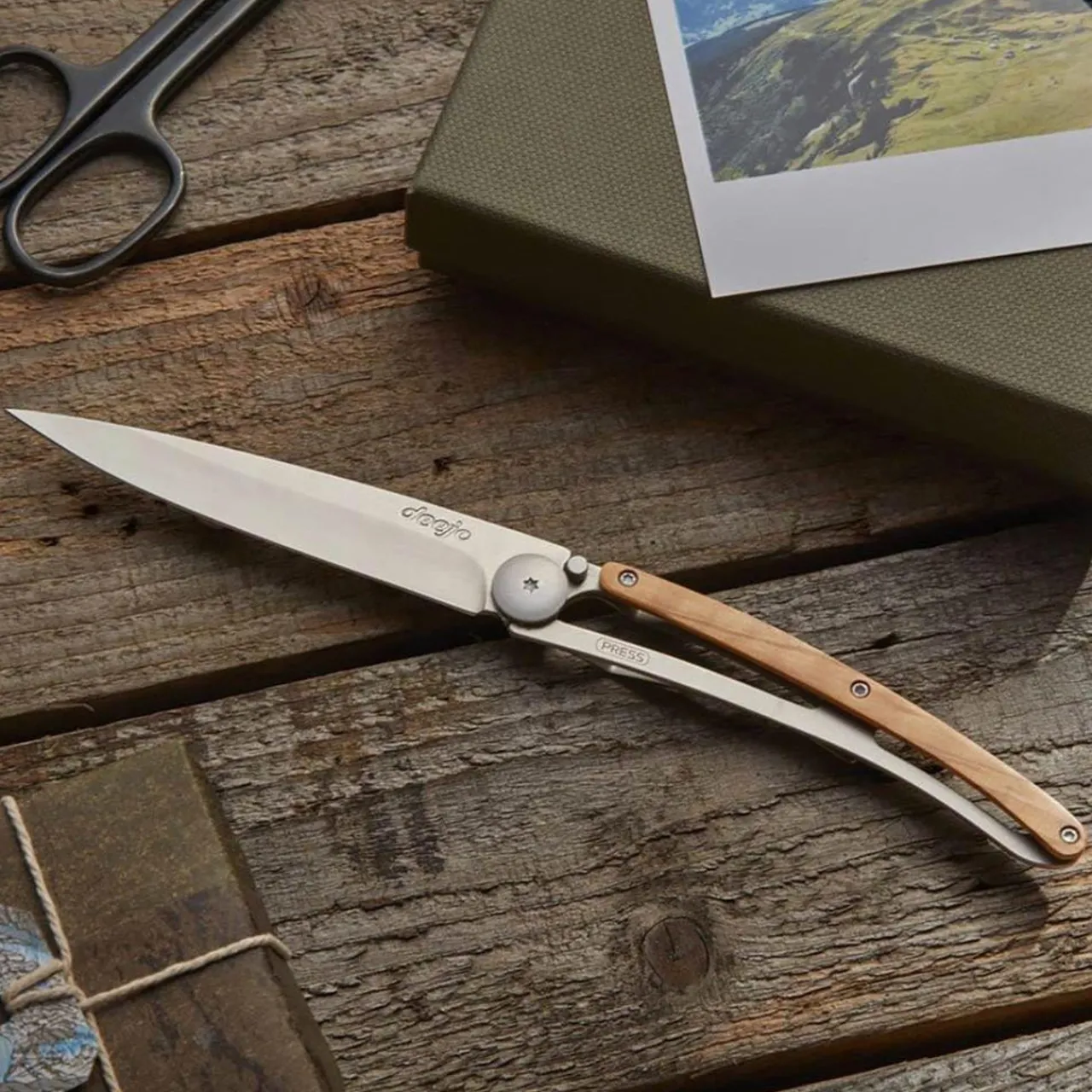 The Deejo Wood 37g knife is an ultra lightweight pocket knife made from stainless steel and a choice of wood. Designed for more than just a hiking enthusiast!Â