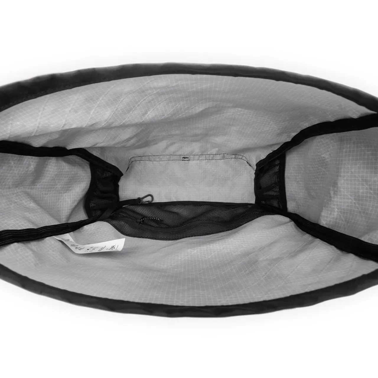 The internal space of the bag includes three additional pockets (one with a zipper) and a carabiner to keep small essentials. The bottom of the bag features elastic cord lacing for securing extra gear. The main material (fabric) of the pack is 100% waterproof, but please, pay attention that the seams of the backpack are not sealed. This means that the backpack is not waterproof.
