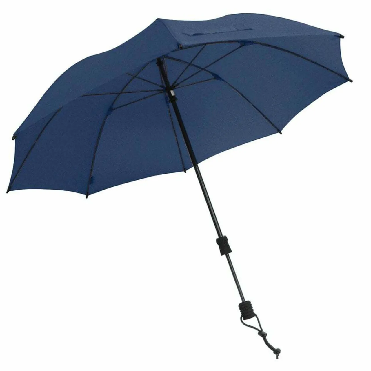 The trekking umbrella Swing hands free keeps both your hands free, free for trekking poles, free to look at a map or for taking photographs. The special highlight: The break-proof glass fibre shaft of this sophisticated umbrella is variably extendable up to 110 cm length and can be fixed at any height by a small twisting movement to match the owner’s body height. By means of two accompanying fastening clips the shaft of the umbrella can be fixed left, right or diagonally to the shoulder straps of the backpack with hip belt and positioned to the direction of the rain or the sun.The elastic carrying loop at the umbrella handle serves as flexible fastening to the hip belt.A further advantage: this trekking umbrella can also be used like a normal trekking umbrella.