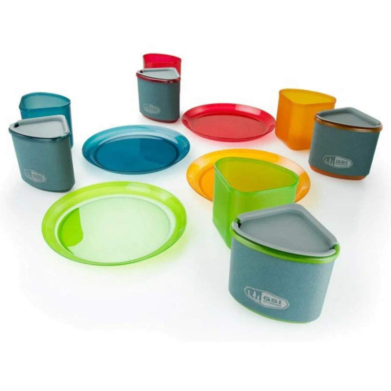 The GSI Infinity 4 Person Compact Tableset packs down small but delivers a huge dining punch that can easily satisfy 4 people. Made from BPA-Free polypropylene, this tableset represent the ultimate in ultra-compact, nesting tableware systems.