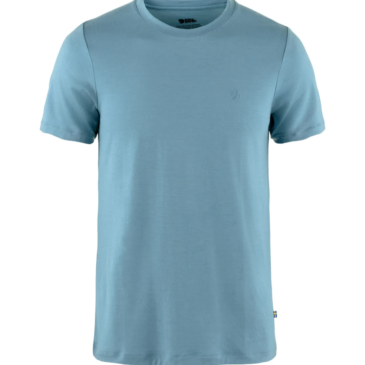 Lightweight short-sleeved t-shirt in a soft jersey knit made from merino wool and recycled polyester. Combines the temperature-regulating properties of wool fibres with the durability and moisture-wicking properties of synthetic ones. A perfect first layer in both warm and cold climates, and extra useful on multiday trips as wool naturally resists bad odours.