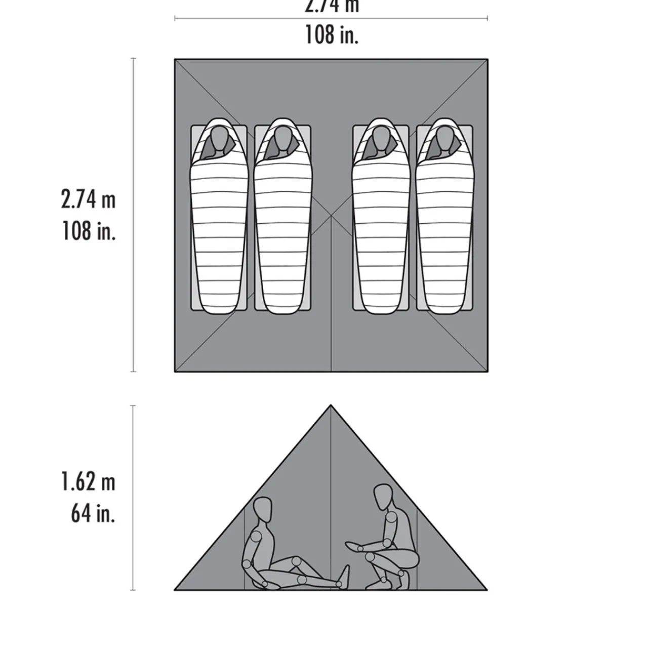 - Featherweight: Hyper-efficient tarp shelter sleeps four but is ultralight even for two, with a 5’ 4” peak height for gearing up easily.