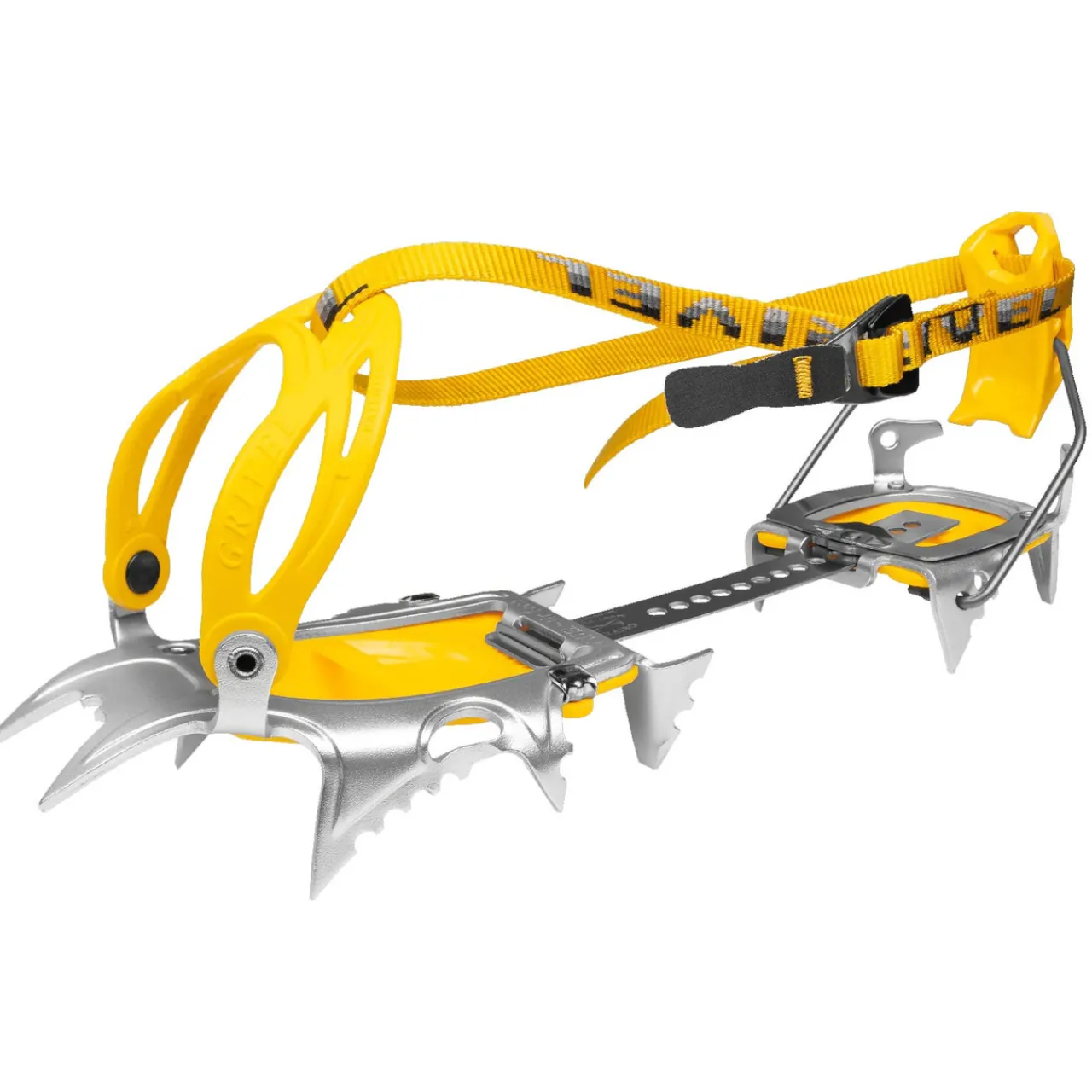 The plastic harness system is hinged from two front posts which retain the boot securely even if it has a shallow, worn front welt or overboots are being used. Available on the following Grivel crampons: G1, G10, G10 Wide, Air Tech, Air Tech Hybrid, G12, Air Tech Light, Ski Tour New-Matic, G14.