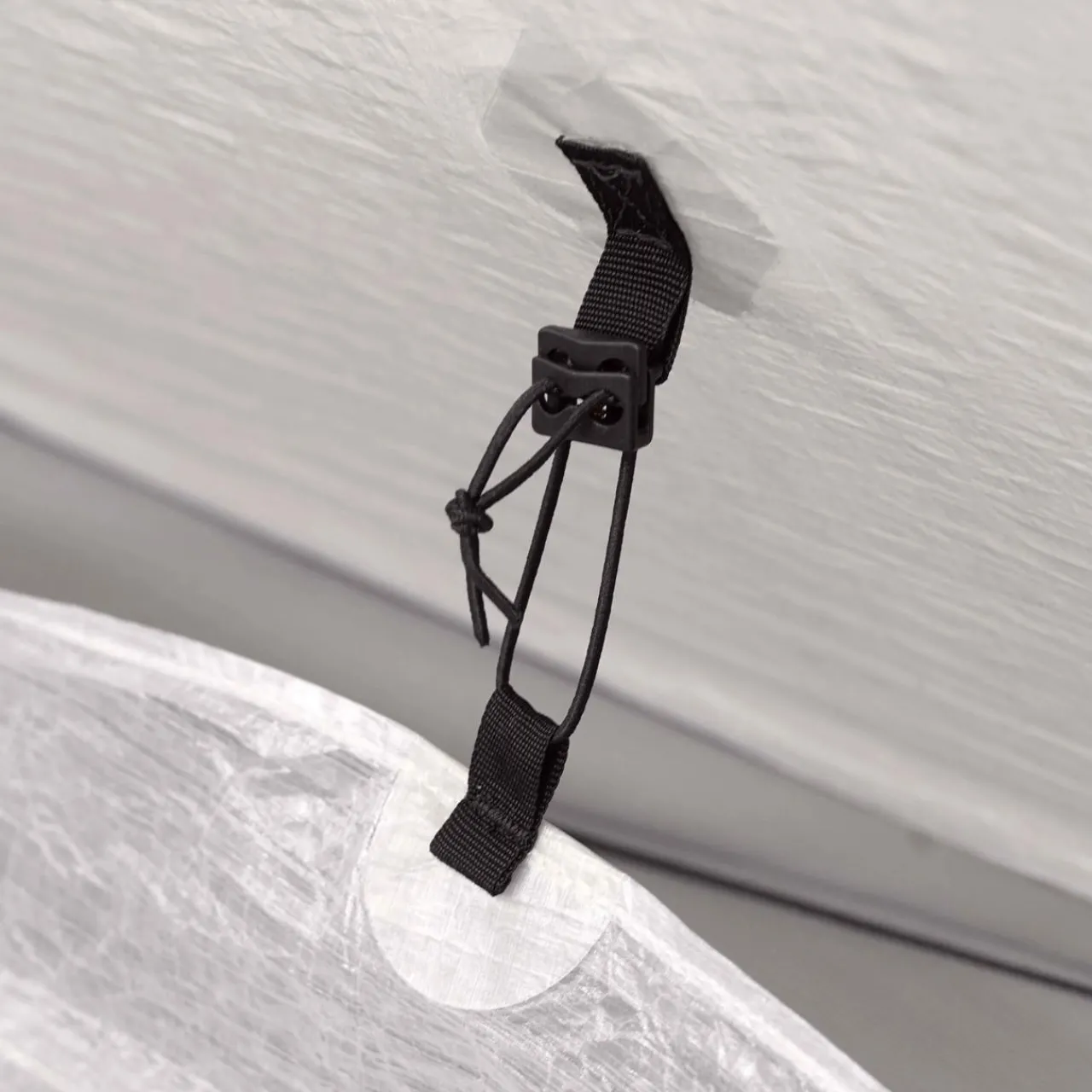 - Tieouts – Interchangeable vestibule door tie-out points. 6 perimeter tie-outs with linelocs reinforced with DCF11. 2 rear mid-panel tie-outs, 2 side mid-panel tie outs. 1 apex tie-out.