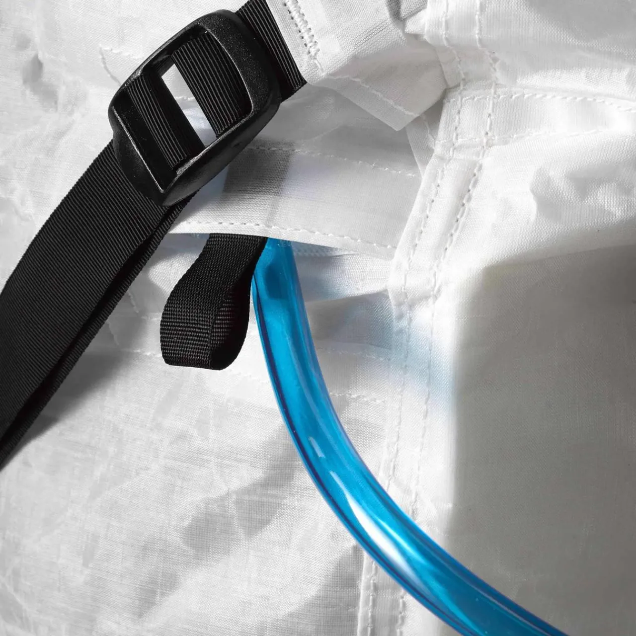 - Adjustable sternum strap with self-tensioning elastic and whistle