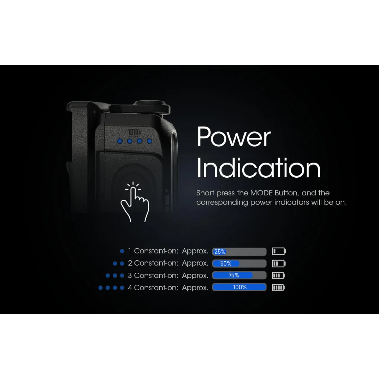 The three light sources are operated by a dual switch interface on the top of the light. The power button and mode button have different textures and shapes to ensure fast and easy use. The mode switch also activates the power indicator so you know when it’s time to recharge.