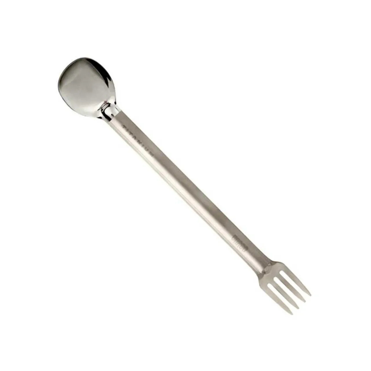 A dual-purpose eating utensil made from high-quality Titanium.Â