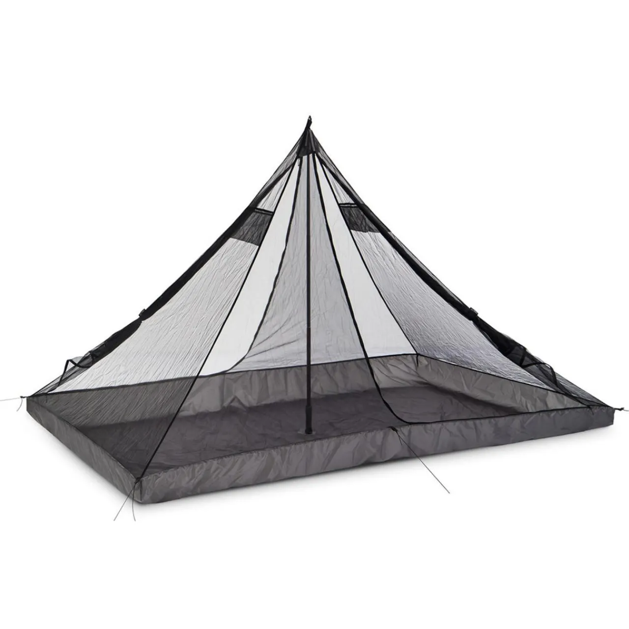 PyraOmm Plus Full Mesh is setup on trekking pole in the center or on 2 trekking poles in A-form for increase inner living space or suspended of the top. For setup you need minimum 4 pegs. Stakes and pegs are not included.