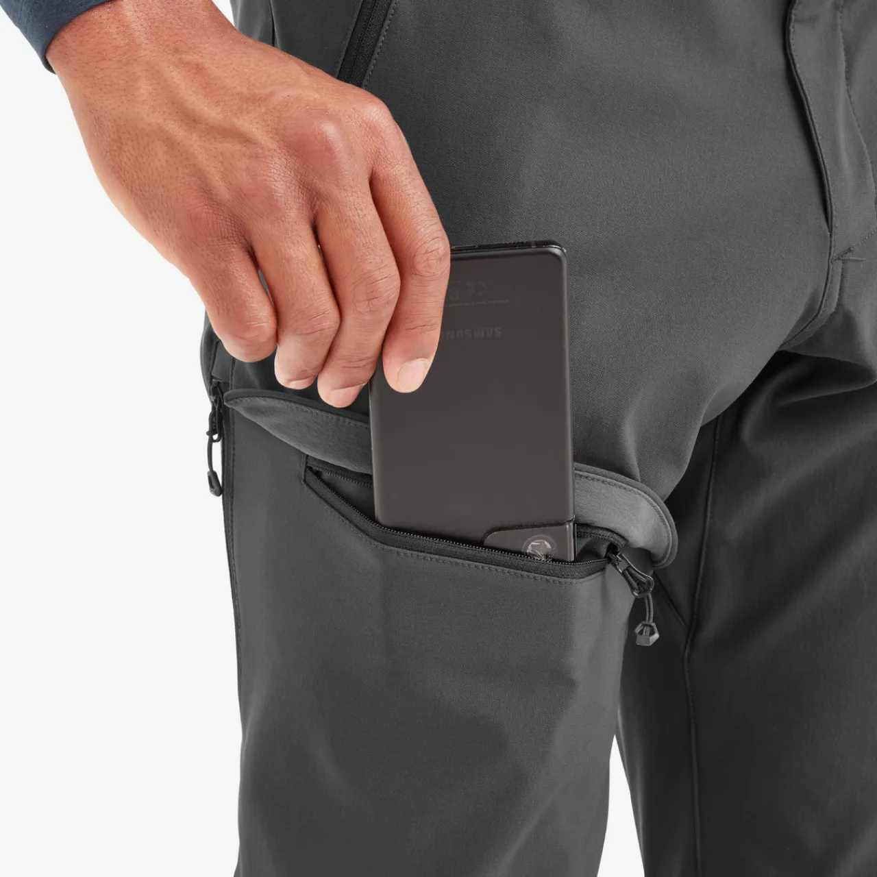 The main choice of fabric in the Tenacity Lite Pants is Montane’s Granite Stretch Thermal, a hardwearing and warm double-weaved soft shell that facilitates a large degree of movement. The double weave makes these trousers very wind resistant and allows them to shed some water, though they are not waterproof. The Granite Stretch thermal is also very abrasion-resistant, so they can stand up to life on the trail.