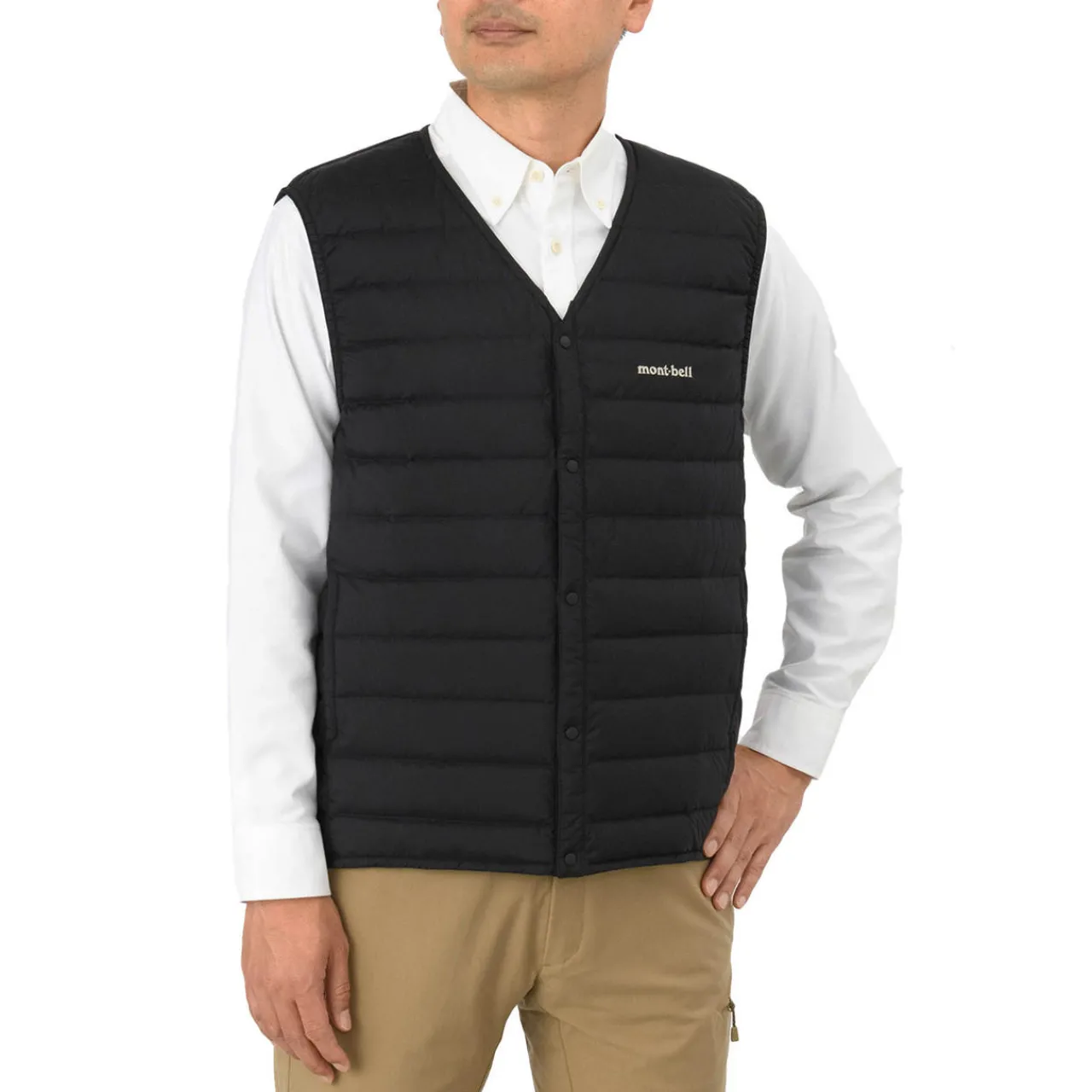 The Montbell Superior Down V-Neck Vest is a versatile, lightweight insulation piece with 800-fill power EX Down. It offers exceptional warmth-to-weight ratio and has a collarless design and snap button closure.