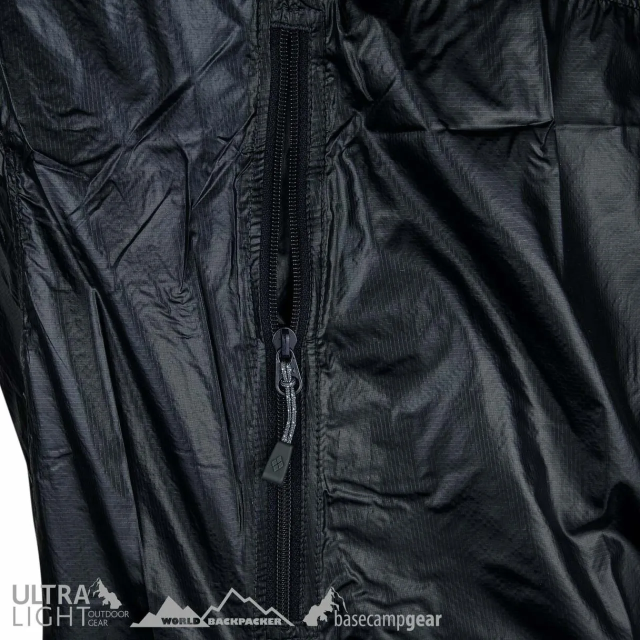 Montbell’s Tachyon Parka has been redesigned to significantly increase breathability without sacrificing its wind blocking performance. With the new fabric, we have manipulated the weave and how we process the material to expertly balance its ability to release built up humidity inside the jacket, yet still block wind. The new 7-denier nylon fabric is coated with Montbell’s POLKATEX® durable water repellent for shedding light precipitation. The redesigned Tachyon Parka now weighs 72g, but the marginal weight gain by using the new fabric makes up for this by being what we consider an exceptional wind shell with improved comfort due to its ability to breathe. We have controlled weight throughout the garment, using thinner elastic bands in the cuffs and eliminating unnecessary ventilation mesh.