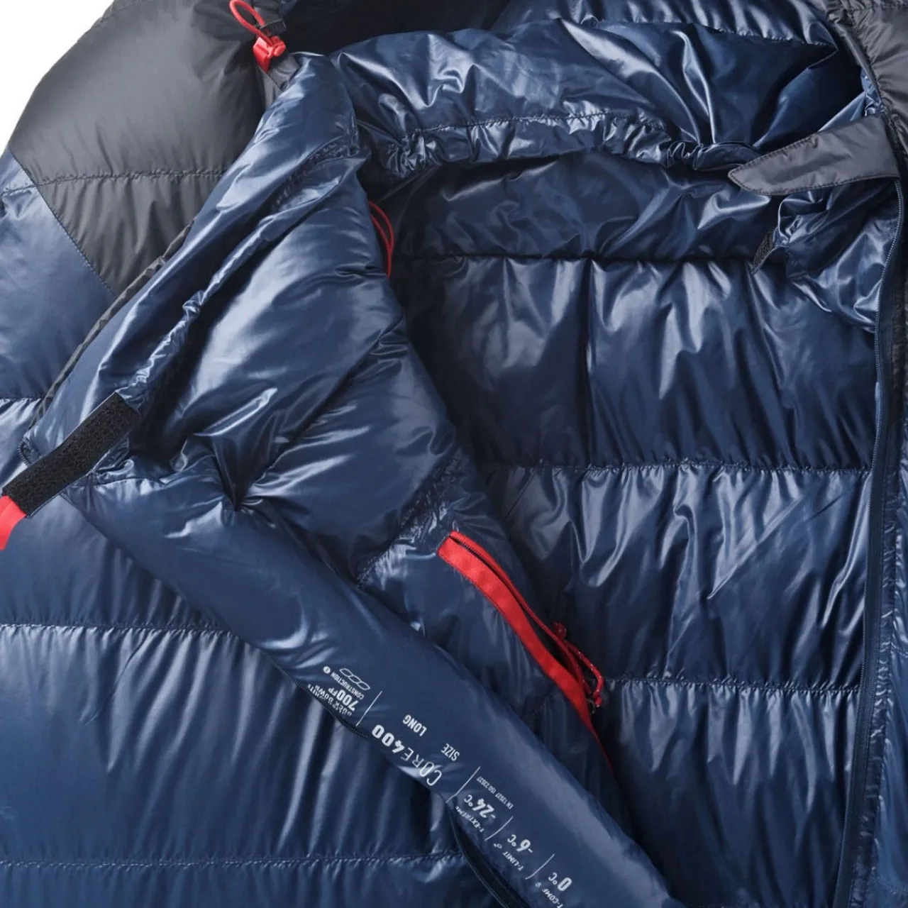 Utilising 700-fill power RDS-certified Polish white duck down, the Core 400 packs an excellent warmth-to-weight ratio. The down is lofty and efficient at trapping heat. Waterproof reinforcements at the hood and foot box help preserve insulation performance if moisture gets in.