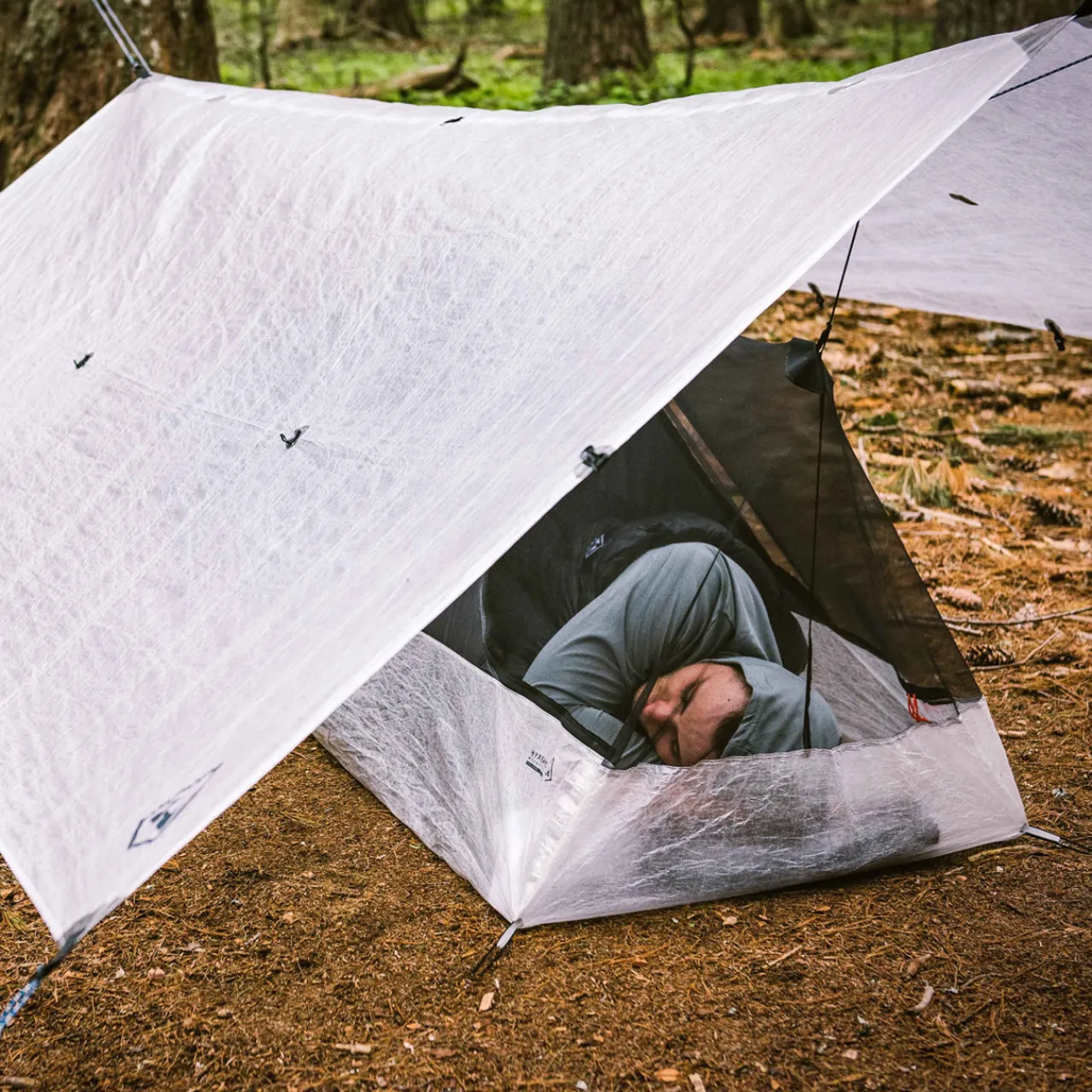 At 158g, the Hyperlite Mountain Gear Splash Bivy is built for those who’d rather be moving than lounging. Paired with a tarp, it offers a reliable barrier against bugs, splashback, and damp ground—ideal for racing weather or the daylight. The tall DCF bathtub floor inspires confidence in heavy rain, and the mesh top keeps the midges at bay.