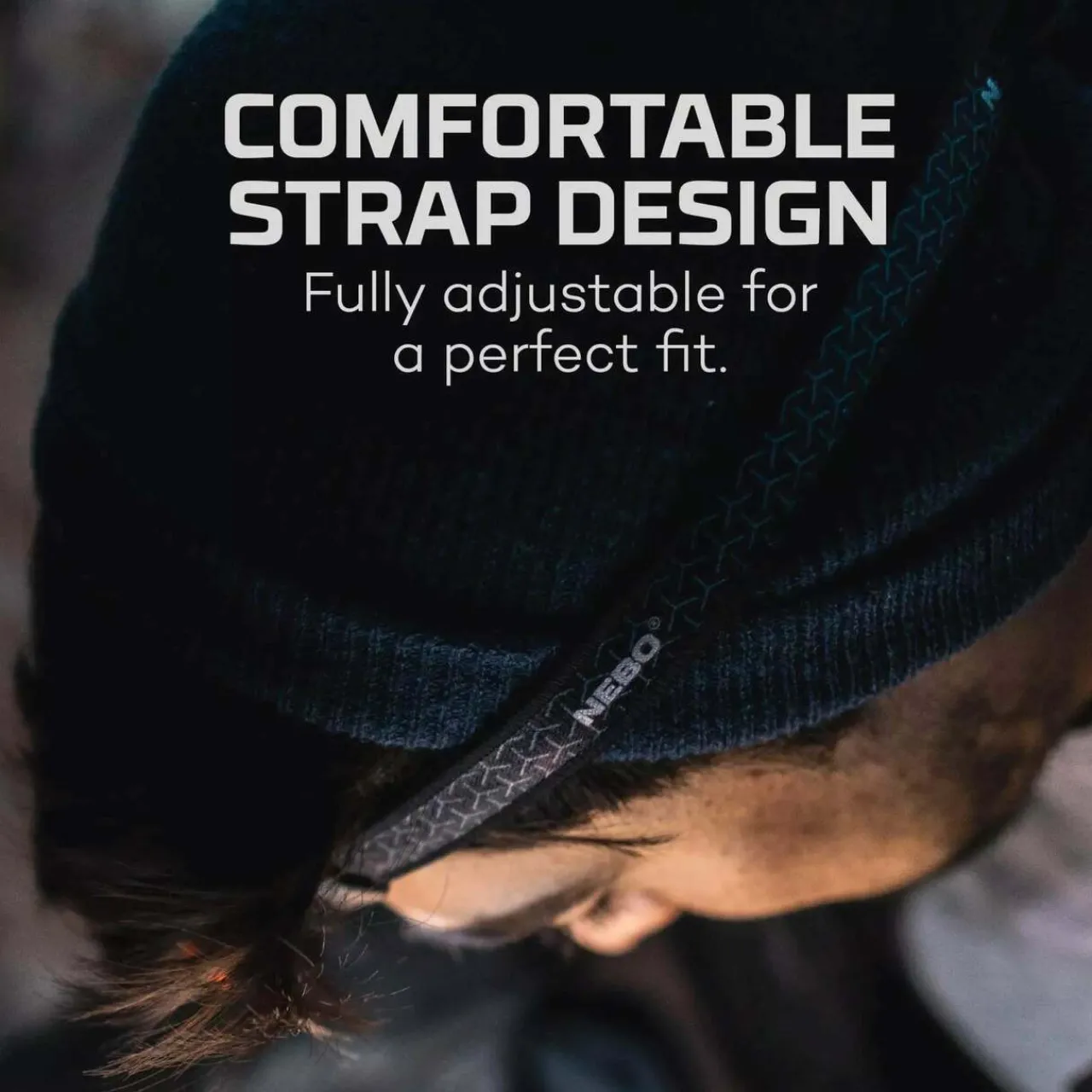 The Einsteinâ„¢ 1000 by NEBO is a low-profile, compact 1,000 lumen headlamp with 5 light modes featuring flex power. Use the included rechargeable battery or 2 x CR123A batteries.