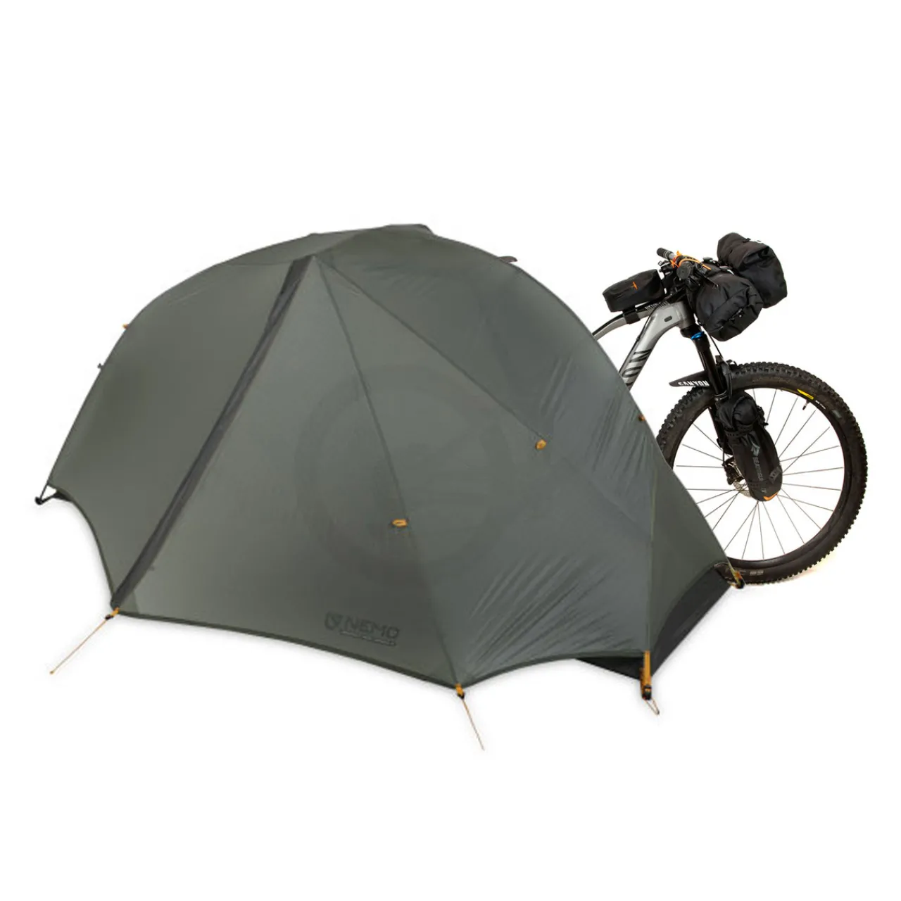 The new NEMO Dragonfly OSMO Bikepack 1P Tent is a spacious and light-weight shelter packed with useful features and adaptability to enjoy your nights under the stars. Built with shorter pole section the tent is tailored specifically for two-wheeled journeys.Â