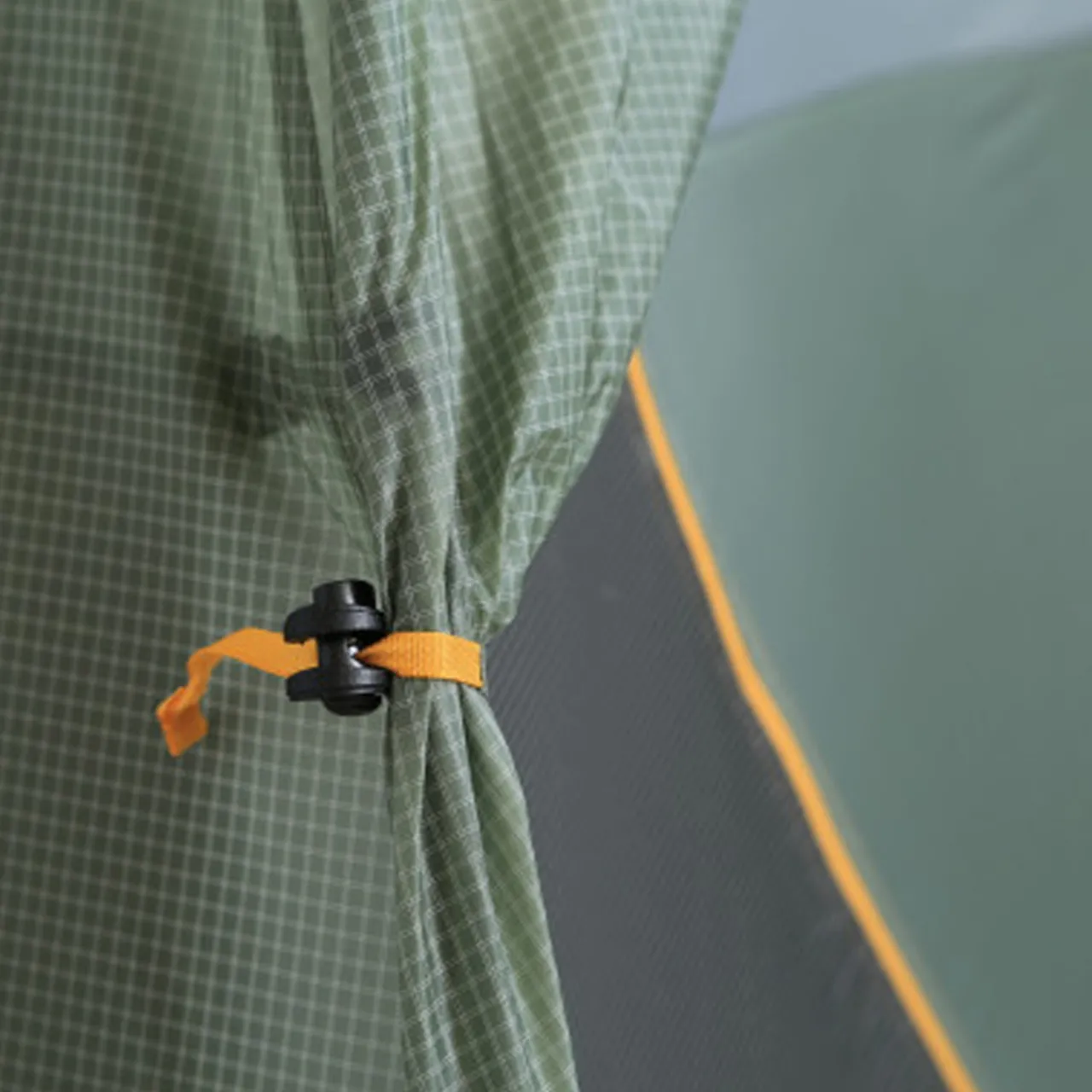The Dragonfly™ Bikepack OSMO™ tent is tailored specifically for two-wheeled journeys, canoe trips, and other excursions where its ultra-small pack-down size will make a huge difference. Now made with our composite OSMO™ fabric, this ultralight shelter promises excellent water repellency that lasts 4x longer and resists stretch when wet. Designed with shortened pole segments, it stows easily in a stuff sack that’s been optimized for bike travel with tiedown straps to eliminate wobble. With the adjustable straps, it can securely fasten to handlebars, a rack, or a frame.