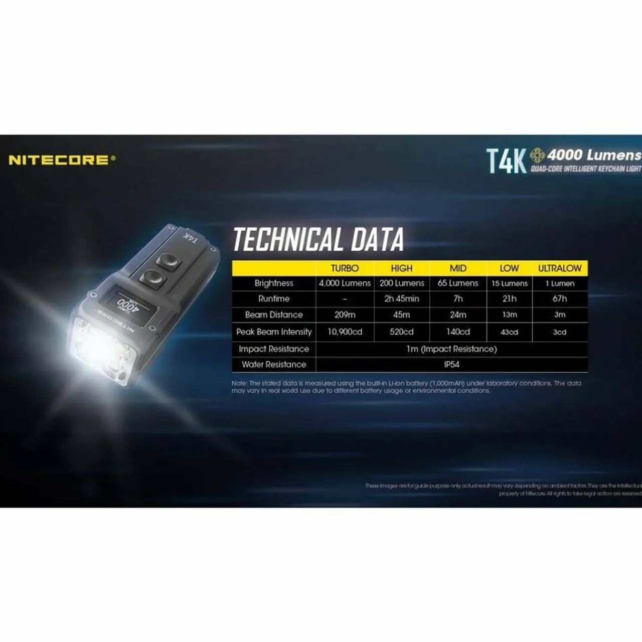 Offering a staggering output for the size of the light, the T4K is a technical breakthrough in the lighting industry! Nitecore have precisely calculated the display, quad-core emitters and dual buttons to pack them into an ultra compact housing without compromising on an excellent user experience.