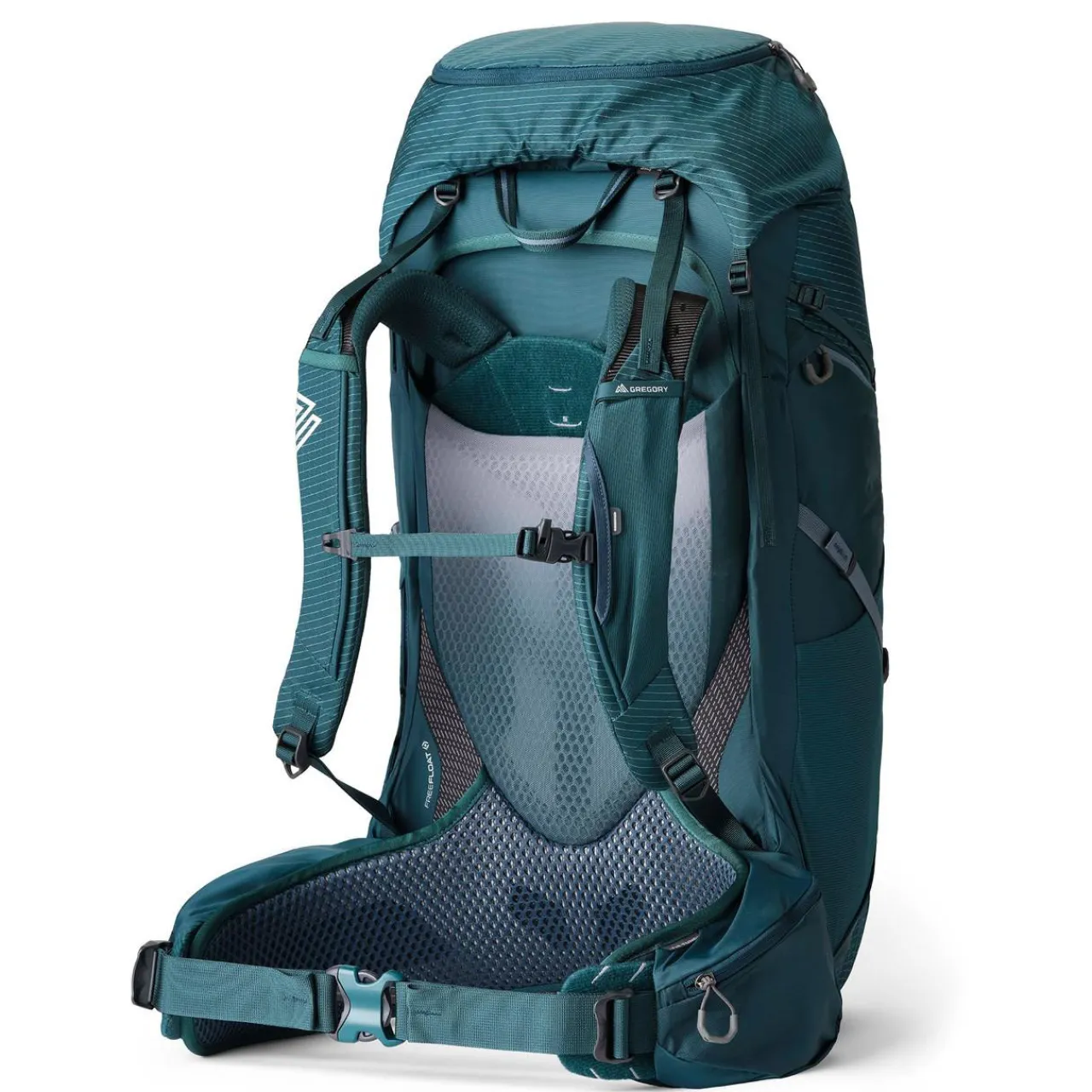 - FreeFloat Hybrid Suspension: Hybrid suspension featuring Gregory’s FreeFloat dynamic hipbelt and AirCushion mesh back panel