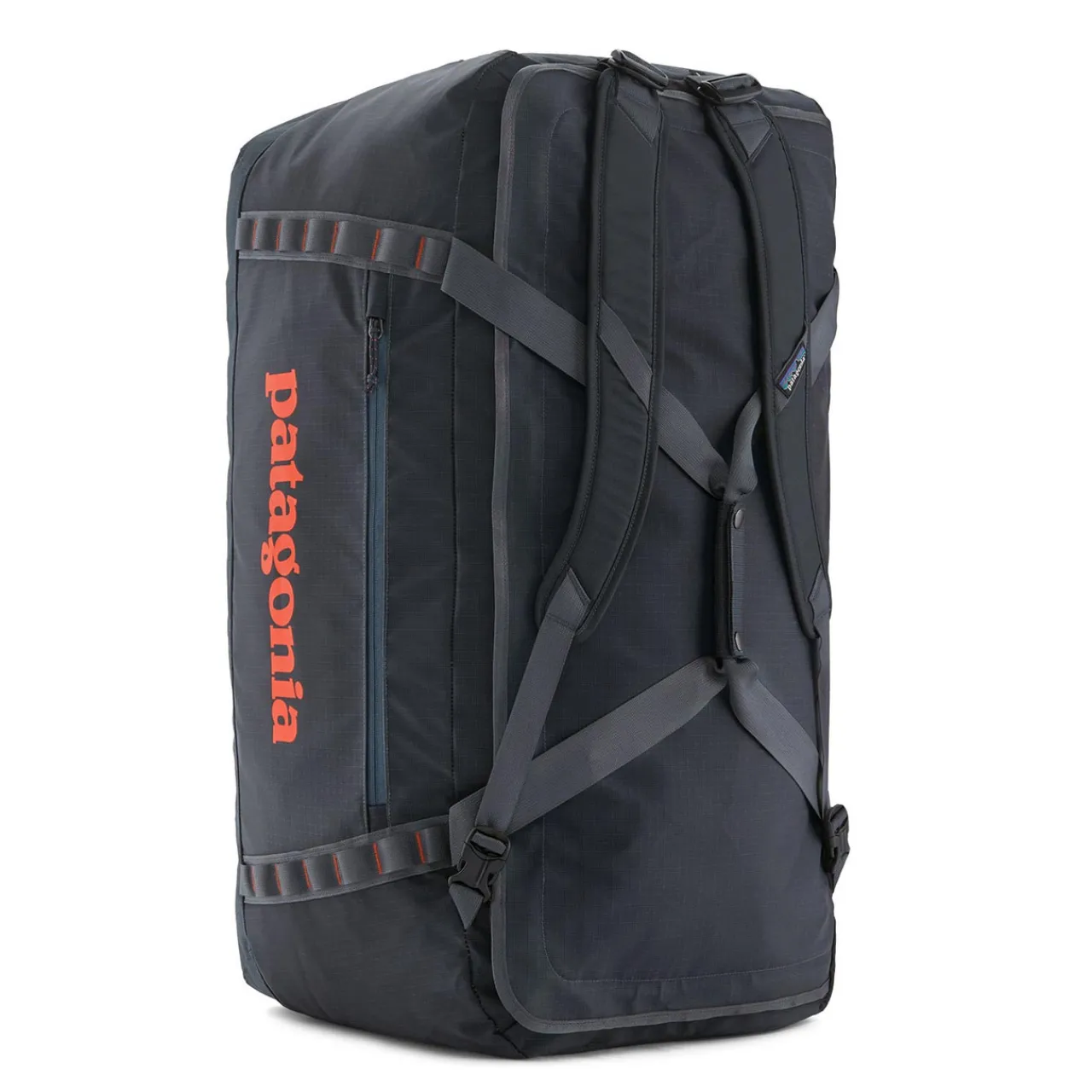 The Patagonia Black Hole Duffel 100L is durable and sustainable for gear-intensive travel and adventuring. Its burly 900D recycled ripstop polyester exterior is laminated with a recycled TPU film, allowing it to withstand abrasions, moisture, and rough treatment.Â
