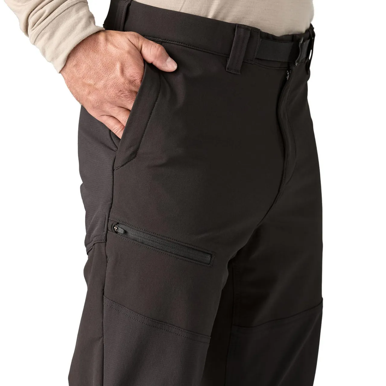 The Patagonia Terravia Peak Pants feel reassuringly solid, especially through the seat and knees, where the reinforcement is noticeable but doesn’t restrict movement. At 572g (Medium), they’re heavier than many softshell options, but the trade-off is clear: proper protection when scrambling, kneeling or brushing through heather. The articulation is well judged, with a gusseted crotch and shaped legs that allow natural movement even with a harness or full pack.