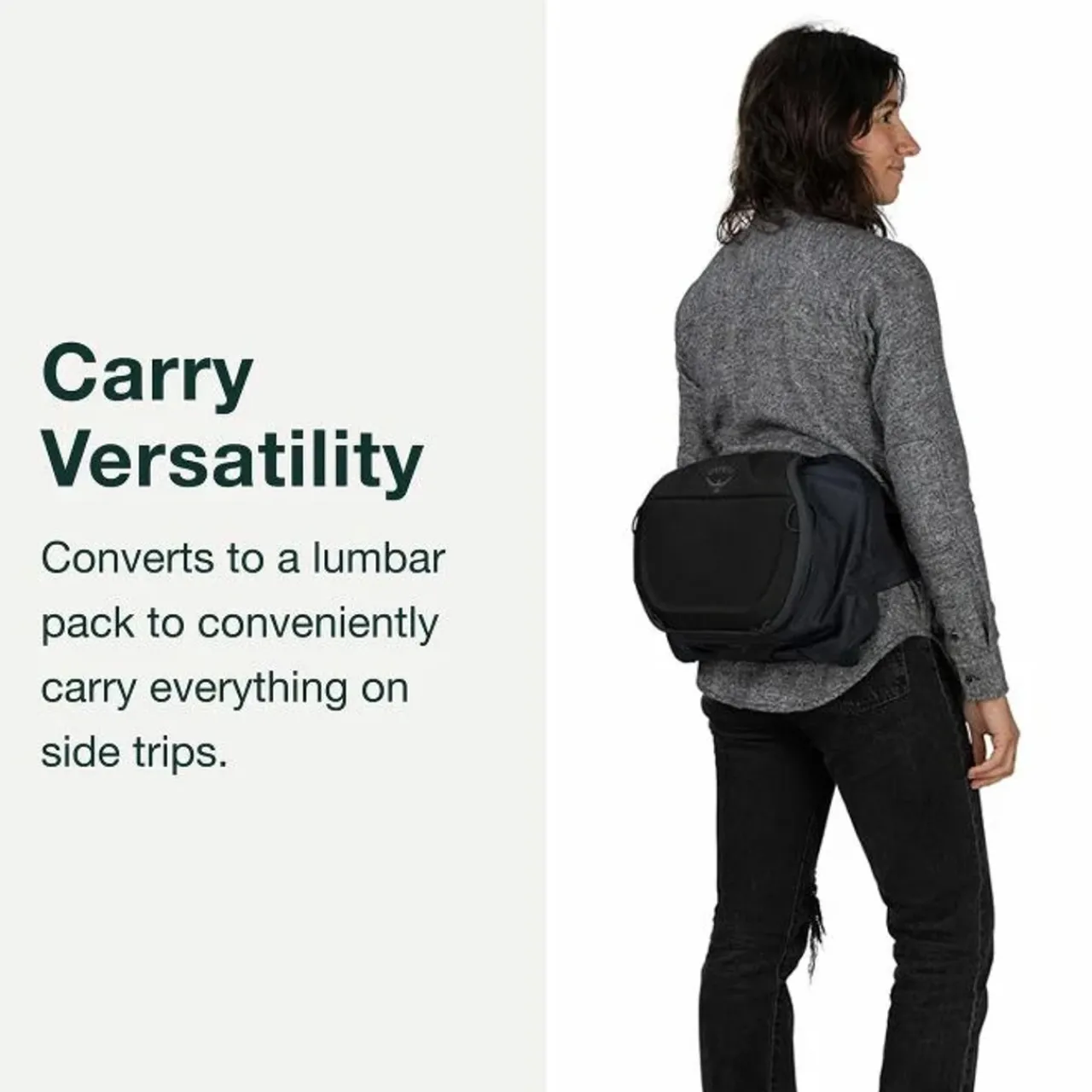 - Converts to lumbar pack. Padded hipwings store behind padded lumbar pad (both covered with spacer mesh) when not in use. Can also be carried cross-body.