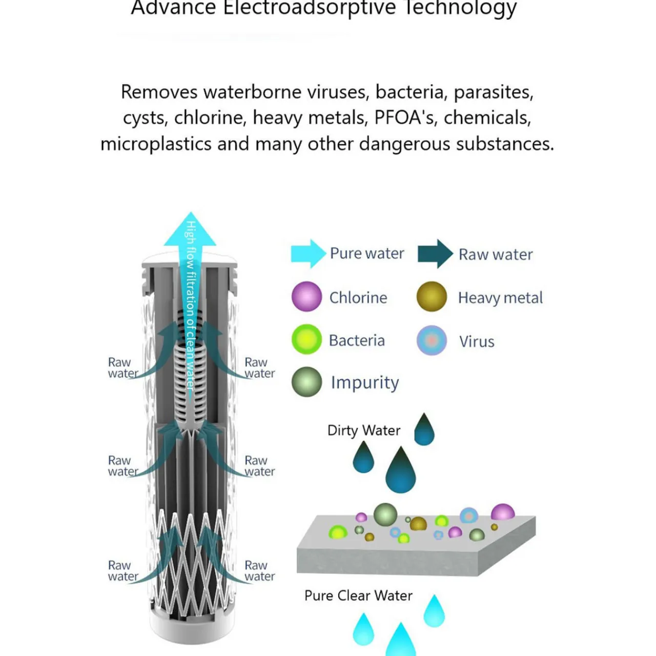 - The Pure Clear® Collapsible Squeeze Water Filter Bottle protects against waterborne viruses, bacteria, parasites, endotoxins, microplastics, chlorine, trace pharmaceuticals, chemical reductions (PFOA’s), organic and chemical matter, dirt, sand, cloudiness and improves taste.