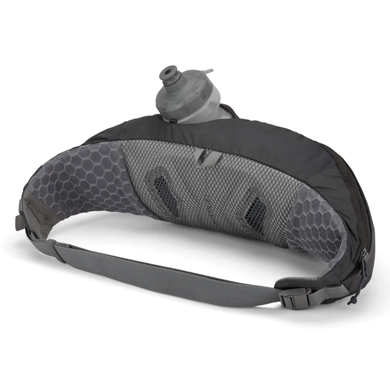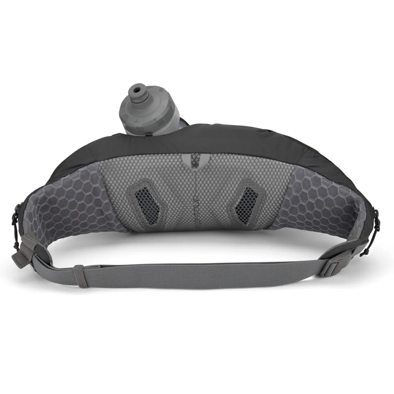 At 94g, it’s designed for those who bring minimal kit on short hikes or runs. The 500ml bottle sits securely in an angled mesh pocket. The Air Contour lumbar pad keeps things breathable and comfortable against the back, and the belt’s pre-curved shape and side adjustment help it stay put with little bounce, even over uneven ground.
