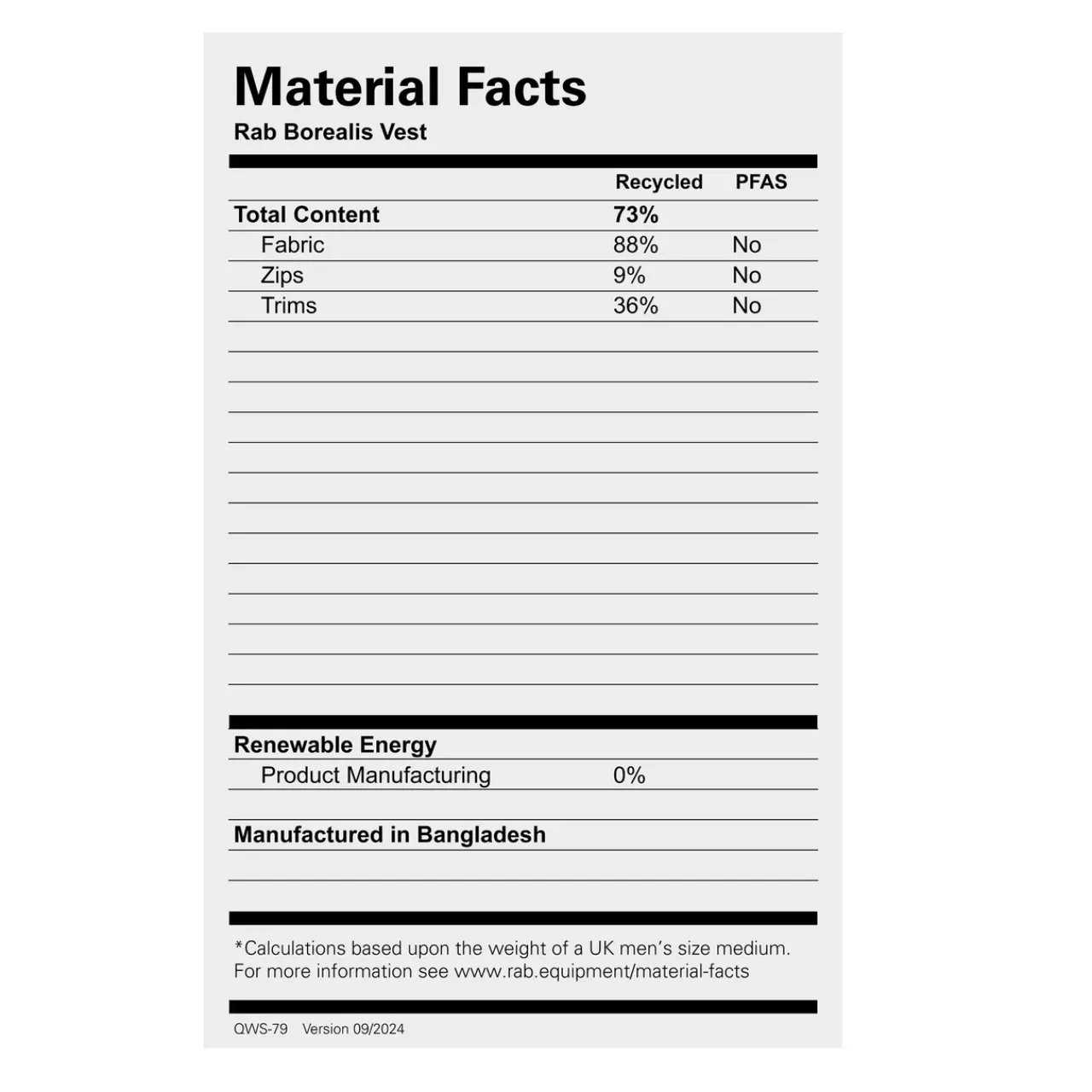 - Matrixâ„¢ single weave stretch nylon (130gsm) with fluorocarbon-free DWR