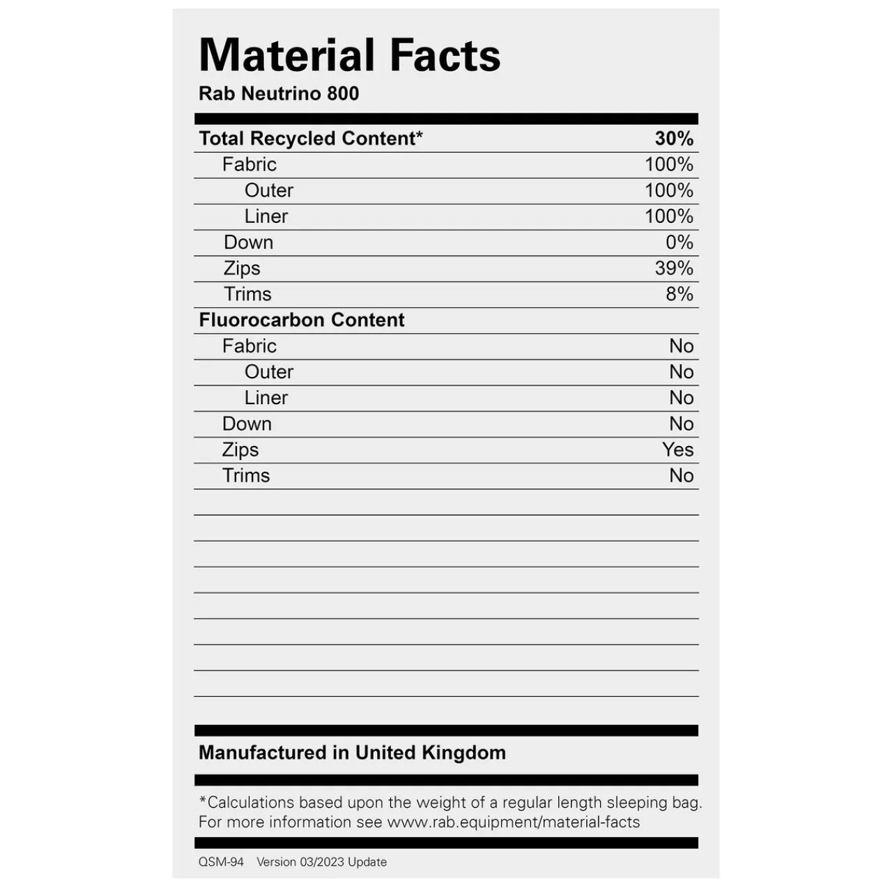 UOG TOP PICK – Neutrino 800 Down Sleeping Bag Rab’s Neutrino range features 800 Fill Power down intelligently baffled and a Tapered Mummy shape for an excellent warmth to weight ratio. An excellent all-round bag for trekking or fast & light in depth of winter, one of our Top Picks!Â