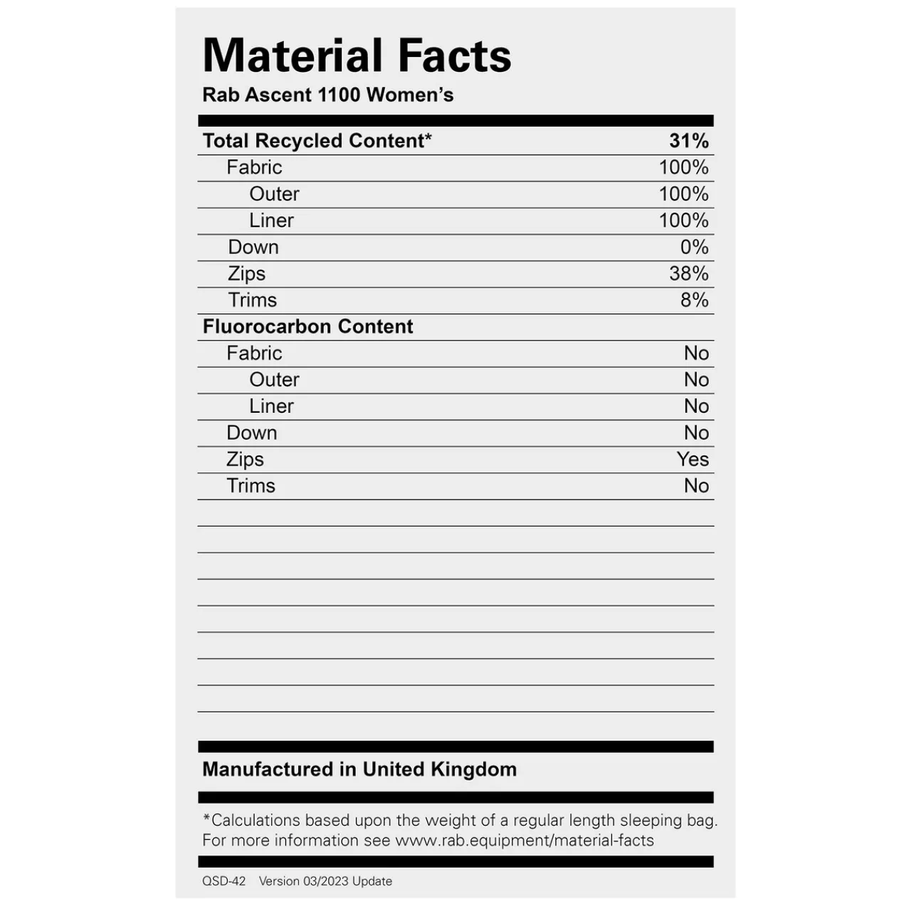 Rab’s Womens Ascent 1100 Down Sleeping Bag fits in the Ascent series which are filled with 650 Fill Power down contained in a trapezoidal boxwall baffle construction with a differential cut to eliminate cold spots. The slightly lower down quality compared to their premium bags makes these bags more affordable but they are still a technical bag.
