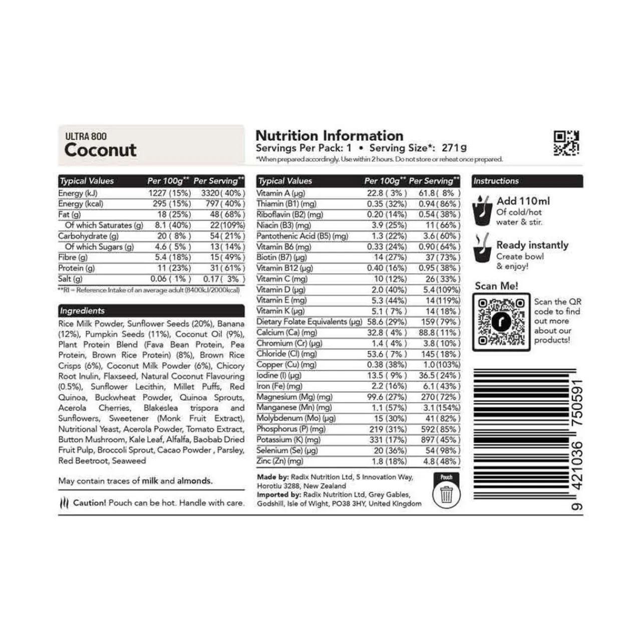 Radix Nutrition offers a wide range of meals and energy servings. The Original range of meals is available in 400 calories for the breakfasts and 600 calories for the main meals, sufficient for most people’s appetites. However, a higher energy serving, the ultra range, offers 800kcal meals to those with bigger appetites and those pushing themselves further and need more energy.Â
