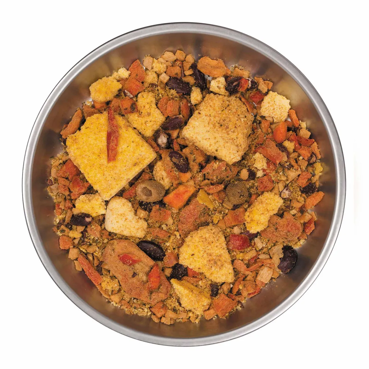 The taste is there, the meat is out. Vegan version of the classic chili con carne cooked only from organic ingredients. Full-bodied taste and aroma of chili, nutritious and filling beans, aromatic bell-pepper and olives, plus the cow is still alive.