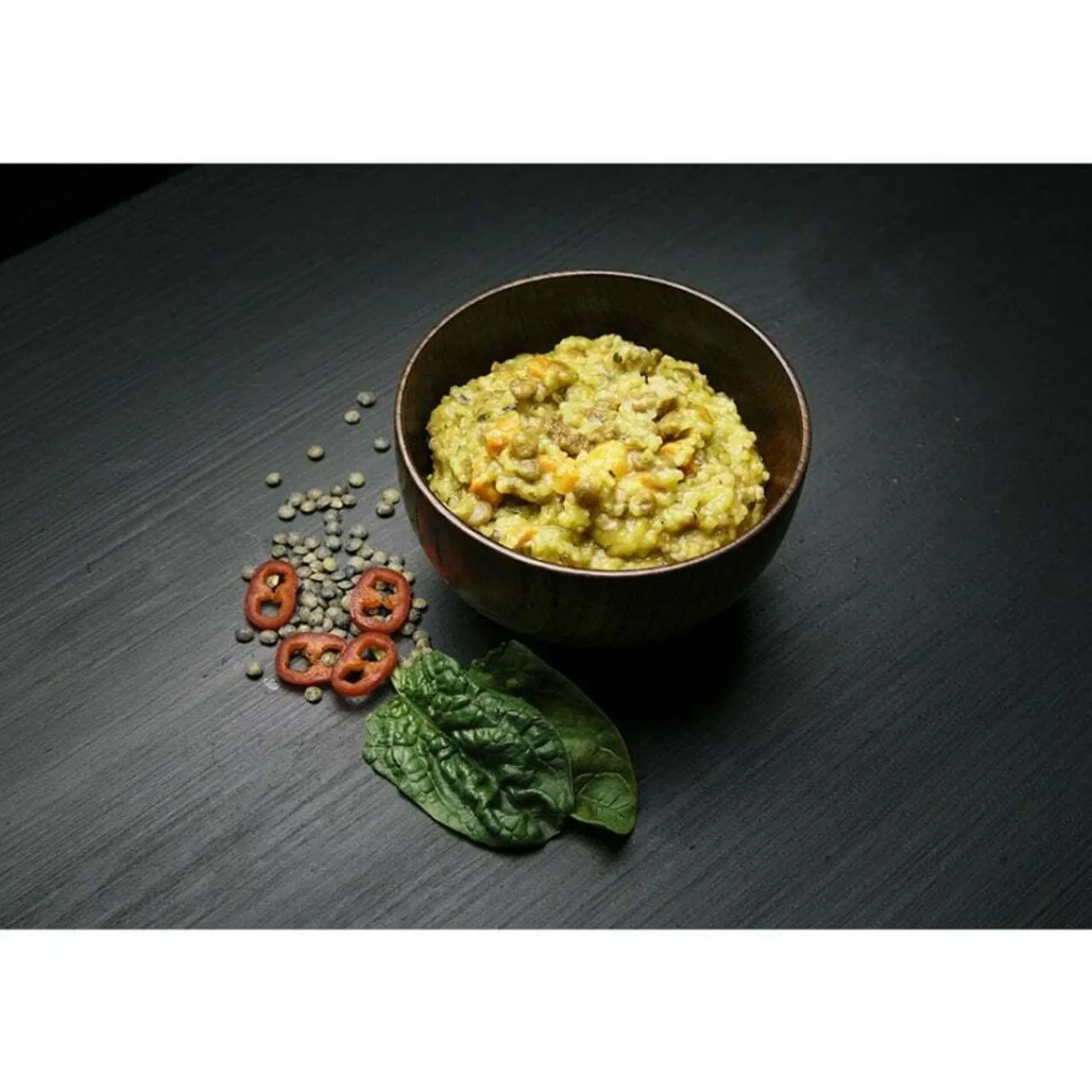 - Couscous (wheat) (32%), lentils (12%), soy protein (soy (98%), seasoning, salt, antioxidant (rosemary flavouring)) (12%), carrot, onion, cream (milk), green beans, cauliflower (4,1%), corn starch, rapeseed oil, spinach (2,8%), celery, soy sauce (soy, salt, vinegar), vegetable bouillon (salt, glucose syrup, aroma, onion, modified starch, maltodextrin, rapeseed oil, vegetable concentrate, seasoning, sugar, vinegar extract), garlic, seasoning, antioxidant (ascorbic acid).