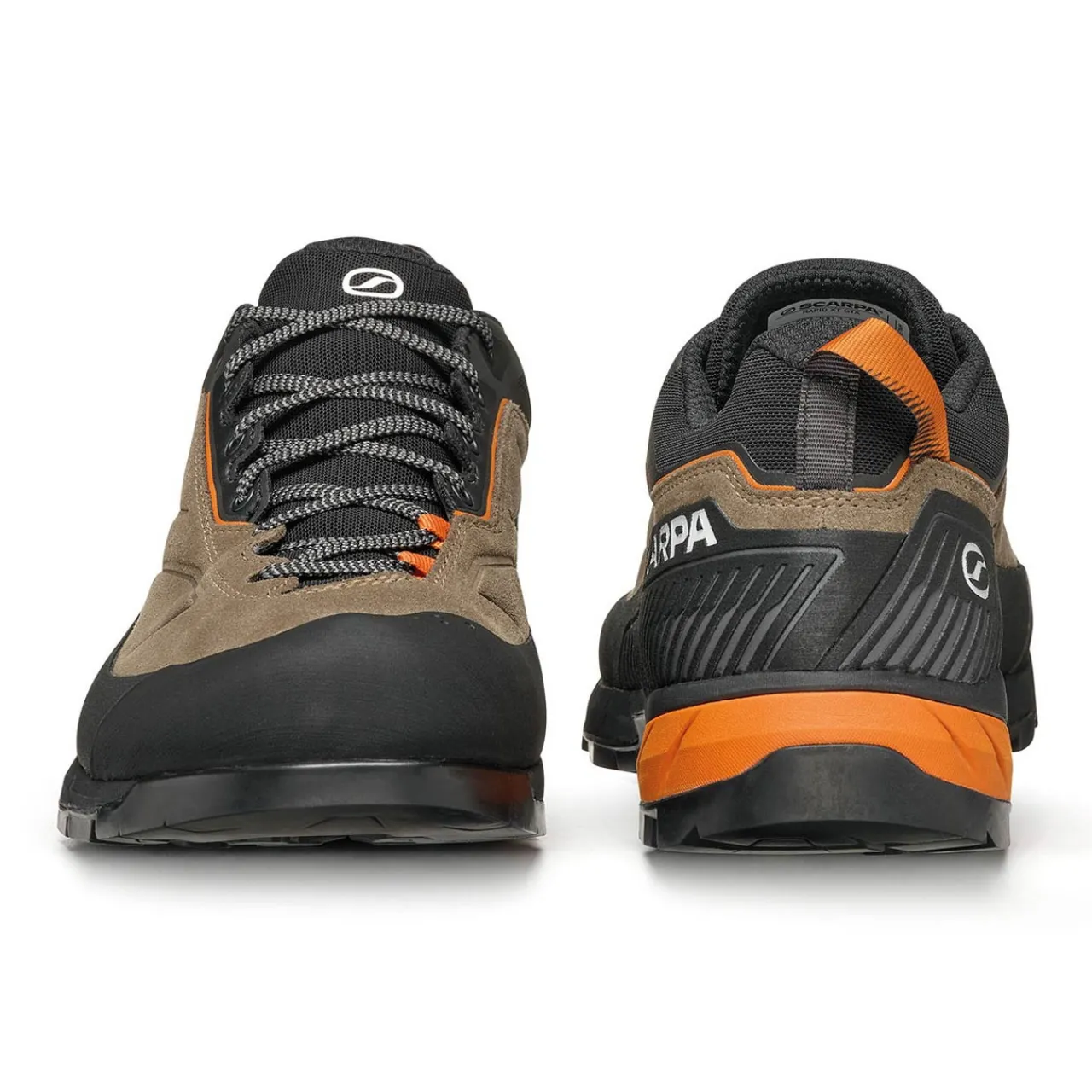 The Scarpa Rapid XT GTX is a versatile approach and trail shoe that balances lightweight agility and robust protection. Weighing in at 390g per shoe (UK size 8), it is ideal for light hiking, trail running, and technical approaches. Its Vibram® MegaGrip outsole offers impressive traction on a range of surfaces, from rocky trails to damp grass, with climbing zones at the toe and a braking system in the heel providing extra stability on steeper terrain.