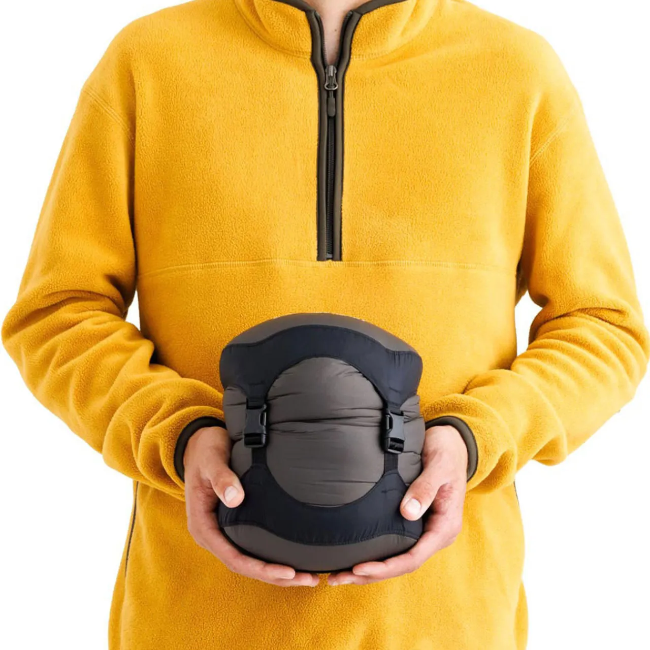 Weighing just 609g for the regular size and 685g for the long size, the Ember quilt is impressively lightweight and compact, compressing to just 8L. The adjustable and removable straps add versatility, allowing you to secure the quilt to a sleeping mat or attach it to the feet and hips for unrestricted movement.