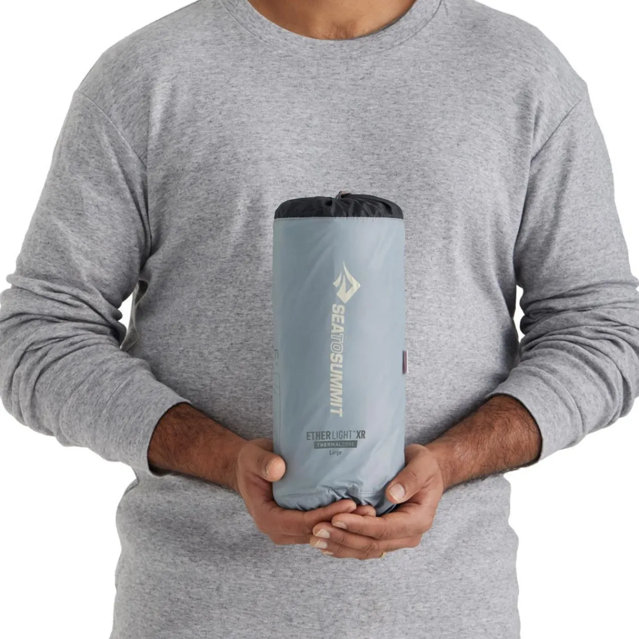 The latest iteration of the Sea to Summit Ether Light XR Insulated ASC Sleeping Mat brings a series of refinements that improve warmth and packability. The most significant change is the shift from down insulation to the new Thermal Core insulation, which uses multiple layers to reflect body heat while reducing air movement inside the mat, increasing thermal efficiency.