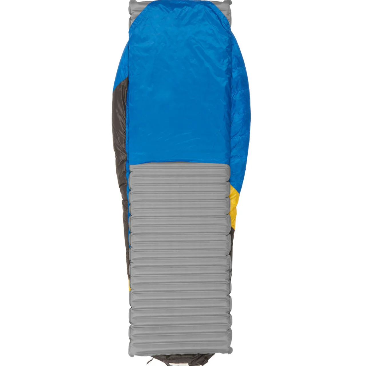 - Temperature Mapping System – This sleeping bag features a sleeping pad sleeve that keeps pad under you, for comfort and warmth and replaces unnecessary bottom insulation