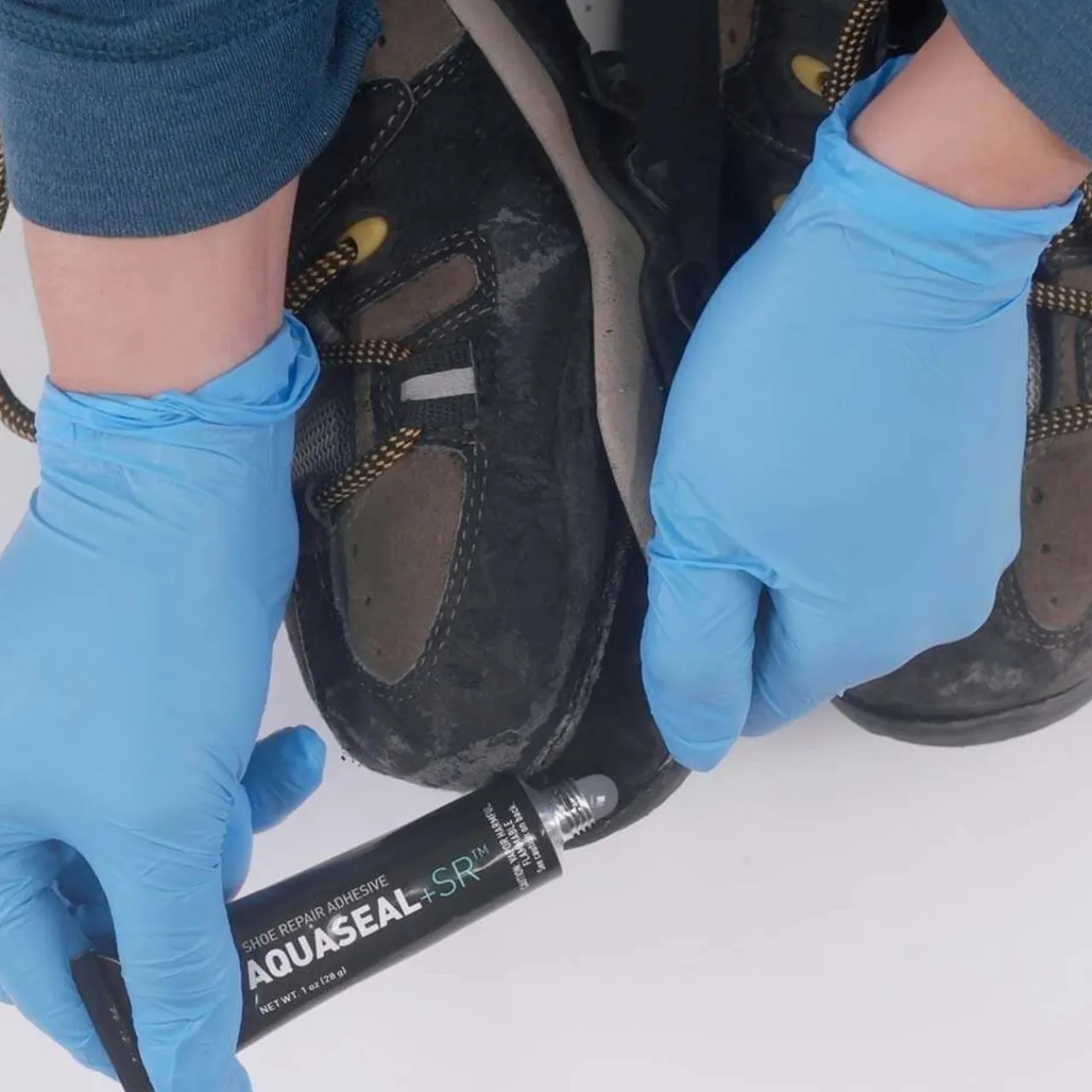 Gear Aid Aquasure SR Shoe Repair Adhesive re-bonds loose soles and tears in boots and shoes. Use it to permanently re-bond a peeling boot sole. It also rebuilds heels and can re-bond boot rands along with repairing torn leather and fabric panels.
