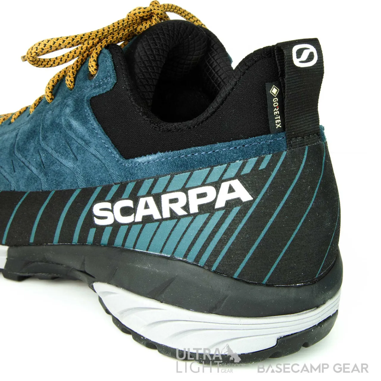 Theses boots offer superb support and protection whilst still giving the adaptability of an approach shoe, these are a fantastic boot for day hikes but excel as a climbing boot for more technical scrambles or more dedicated rope climbing. These Gortex boots offer superb protection from the worst of the British weather, but if you are looking for a lighter shoe, scarper offer a version without the Gortex lining. A strong, solid Vibram sole definitely give you confidence over a wide variety of terrains in all weather condition apart from maybe deep snow, and the rubber toe cap seriously offers protection as well as some grip. Good support in the heel and toe box keep you mobile longer and the extended lacing system, unique to Scarpa mean you will get a fit that is tailored too you. Scarpa are industry leaders in footwear, and these shoes are a testament to that. .