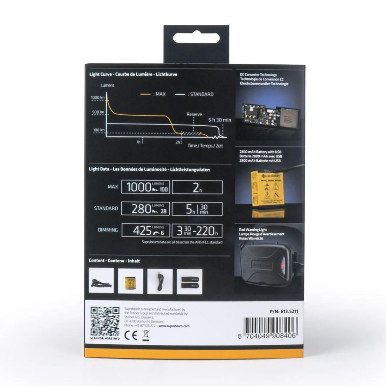 - Versatile Headlamps – Our professional headlamps are fitted with a versatile plug system that protects and prolongs the products lifetime. The plugs in the headlamp and battery pack will detach if your headlamp gets tangled. Suprabeam headlamps are built to last. This is not only reflected in the choice of materials, but also the modular construction. The headlamp consists of four parts; lamp head, cable, batterypack, and headband – which are all interchangeable. This does not only make maintenance easier, but also prolongs product lifetime considerably