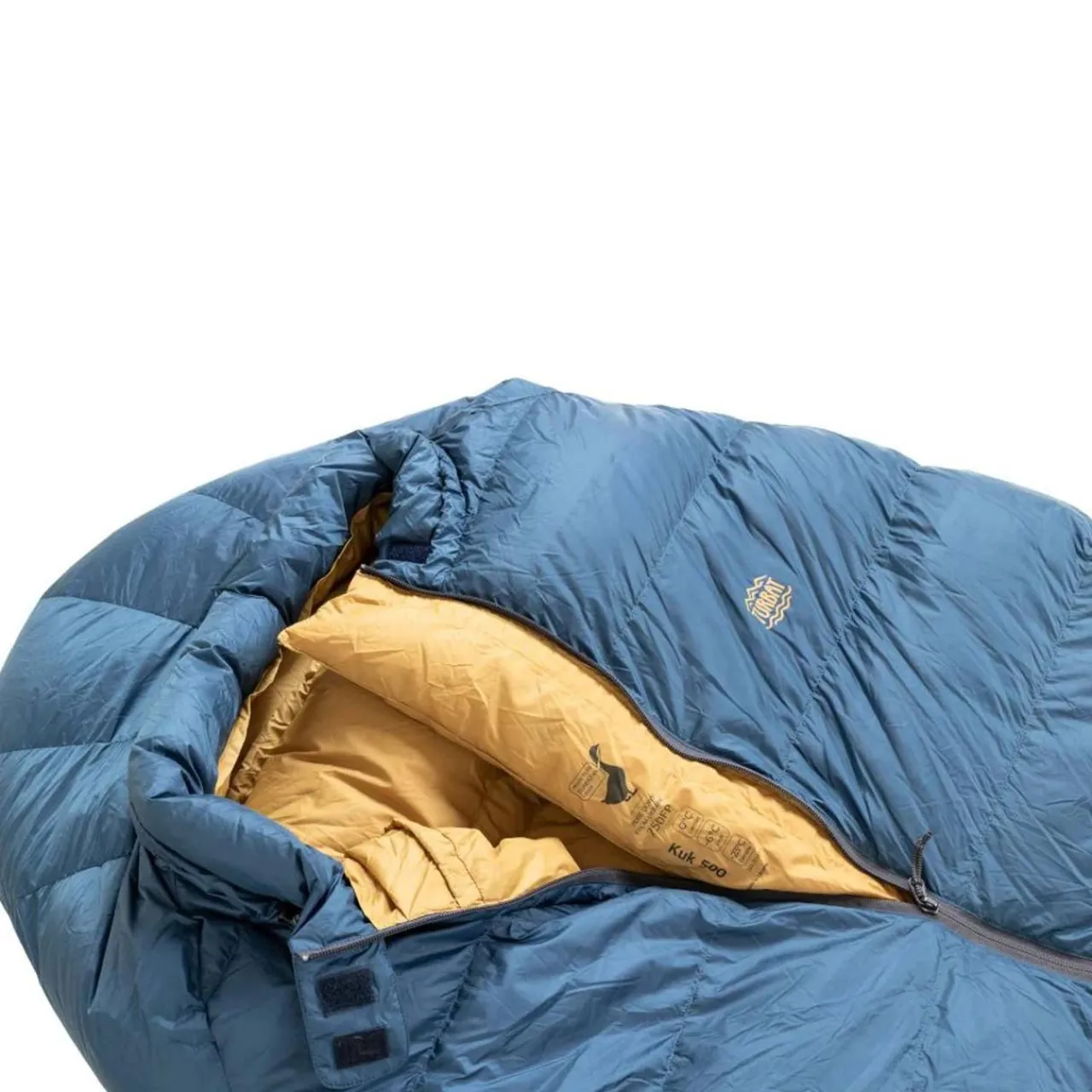 The anatomical shape of the Kuk 500 ensures a snug fit, enhancing thermal efficiency and reducing cold spots. Its practical centre zip has a baffle to prevent heat loss and ease of entry and exit. This thoughtful design element also allows for adjustable ventilation, making it versatile for varying temperatures.