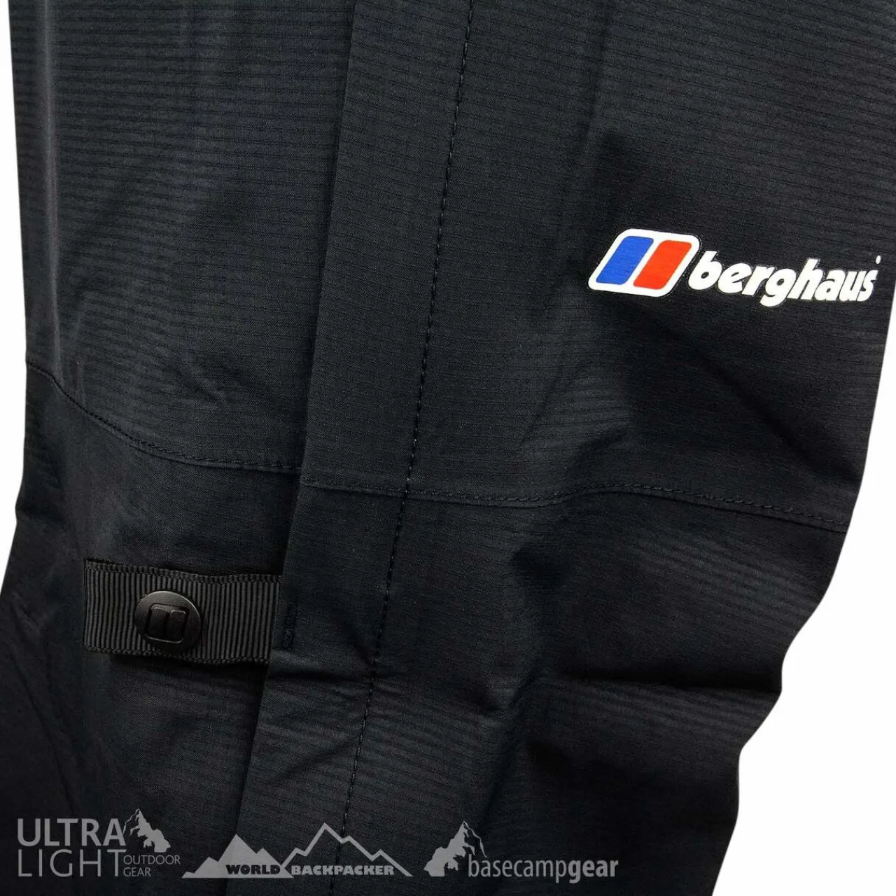 Women’s Paclite Gore-Tex Overtrousers from Berghaus provide very high levels of waterproof protection. The 3/4 length zips can be opened for venting when in use, you can open them up all the way down the pants and use the press stud at the ankle and halfway up to keep your legs still protected but very vented. The pants use a water resistant zipper and a storm flap over the top of that, if you’re battening down the hatches in these overtrousers there won’t be any ingress of water through the zip, that’s for sure.