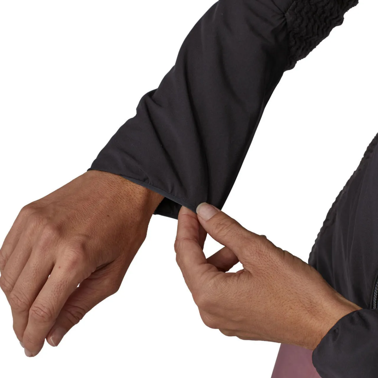 - R1® Air fleece panels on the upper and lower back, sides and under the arms add ventilation while wearing a pack; made of 100% recycled polyester hollow-core yarns in a unique zigzag pattern that wicks moisture, dries fast and is highly breathable